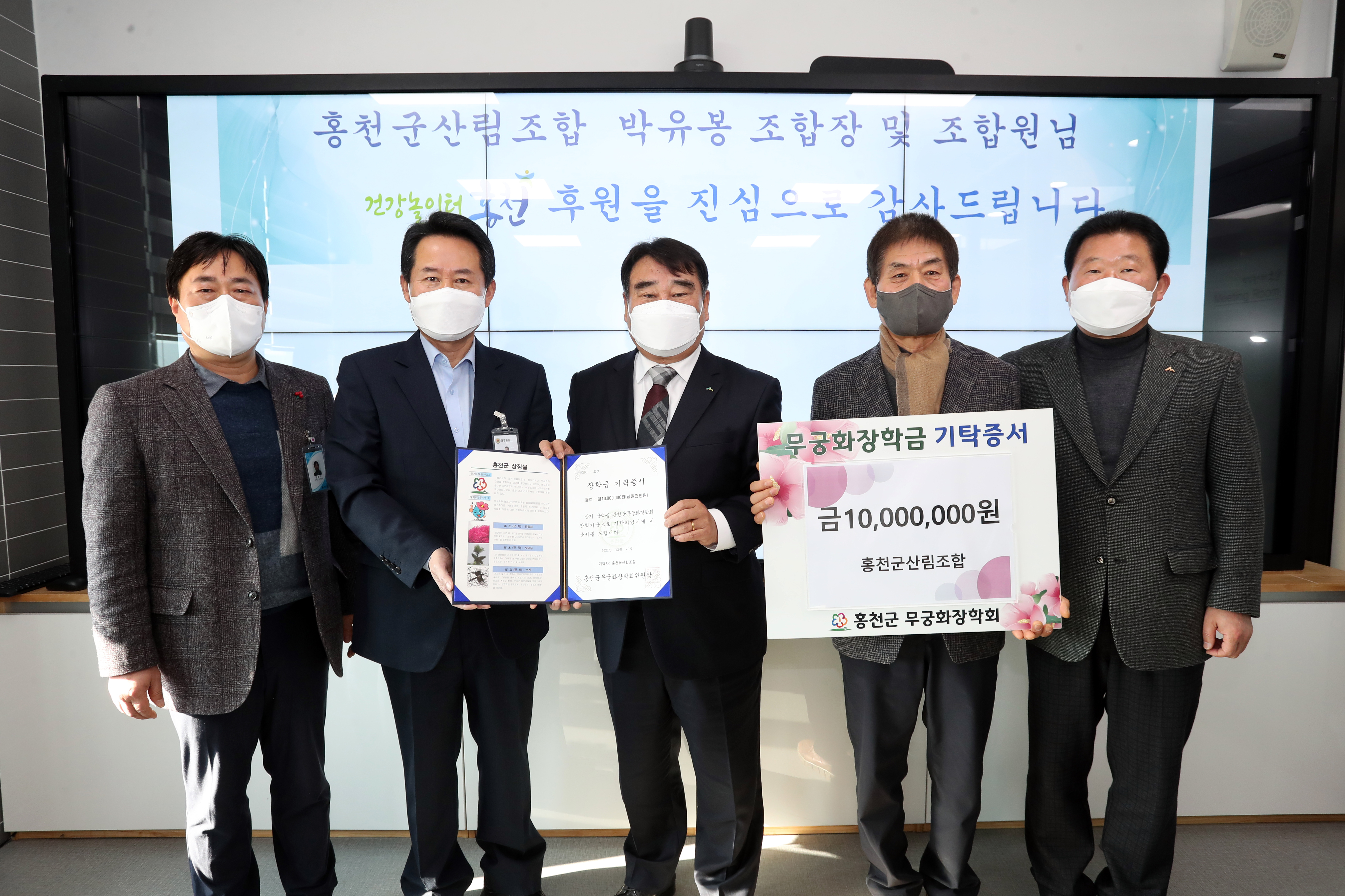 [강원사회복지신문 김종한 기자]=홍천군산림조합(조합장 박유봉)은 지난 12월 20일 홍천군청을 방문, 향토 인재 육성을 위해 써달라며 무궁화장학금 1,000만원을 기탁했다.