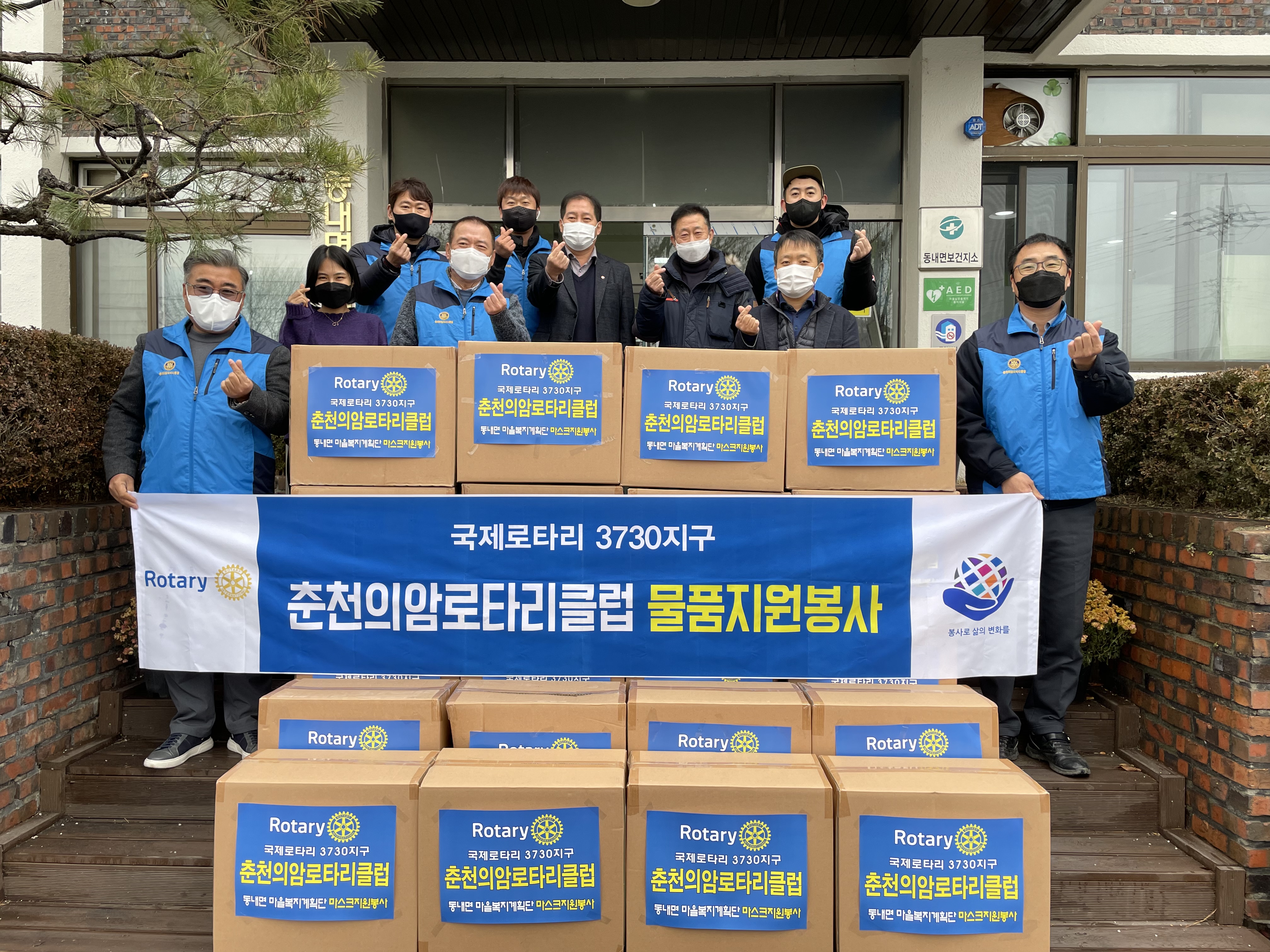 [강원사회복지신문 서은진 기자]=춘천시 의암로타리클럽(대표:이기현)은 지난 12월 15일 춘천시 동내면 마을복지계획단 '우리동네 여기저기' 사업에 사용할 수 있도록 마스크 1만장을 후원했다.