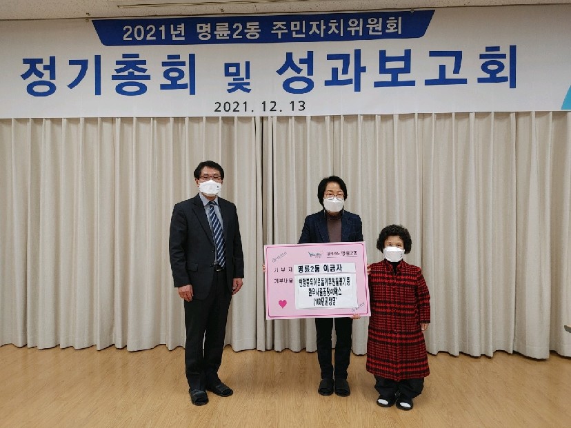 [강원사회복지신문 홍기한 기자]=원주시 명륜2동 주민자치위원 이금자 씨는 지난 12월 13일 연말을 맞아 지역 불우이웃을 위해 명륜2동 행정복지센터(동장 박정희)에 100만 원 상당의 한우 사골곰탕 세트를 전달했다.
