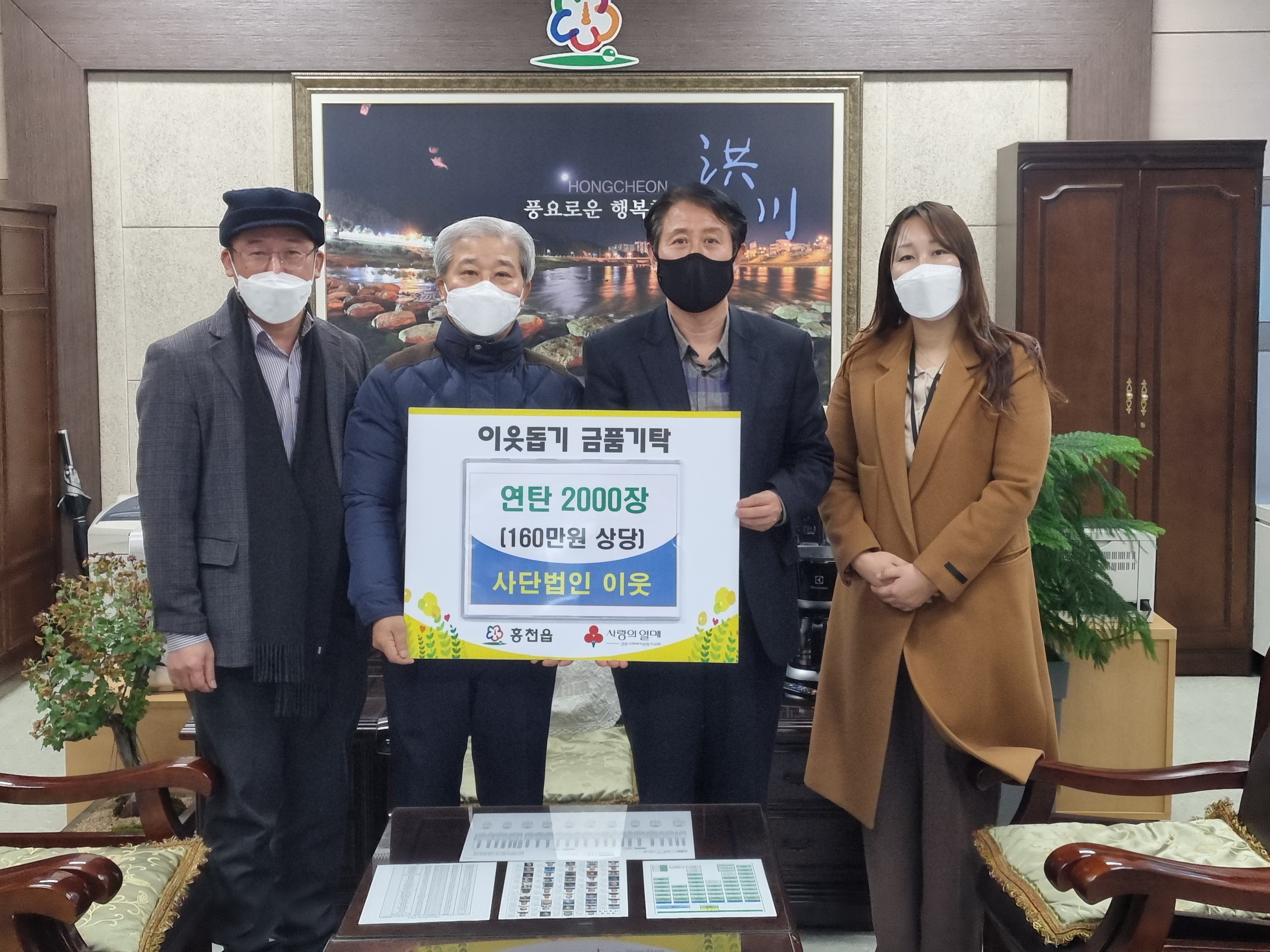 [강원사회복지신문 서은진 기자]=자생봉사단체 사단법인 이웃(이사장 박학천)은 지난 12월 9일 전상범 운영위원장과 함께 홍천읍 행정복지센터를 방문, 소외계층을 위한 사랑의 연탄 2,000장(160만원 상당)을 기탁했다. (사)이웃은 매년 소외계층을 위한 연탄 및 난방비 지원활동을 펼치고 있다. 박학천 이사장은 "동절기엔 ...