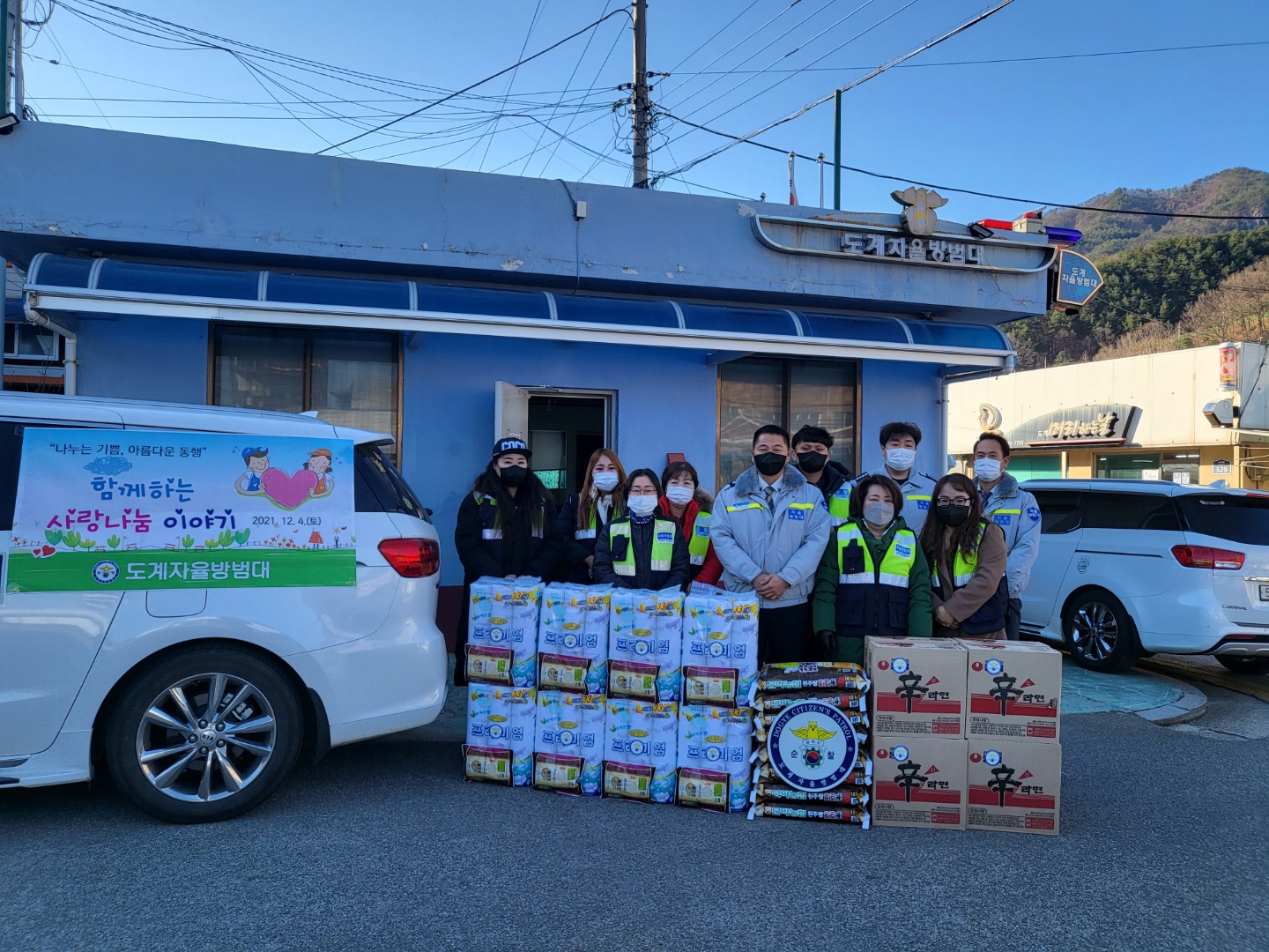 [강원사회복지신문 김종한 기자]=삼척시 도계자율방범대(대장 천기홍)는 최근 도계지역 어려운 이웃 4가구를 직접 방문해 쌀 80kg, 라면 8박스, 휴지 8롤 등 이웃돕기 성품을 전달했다.