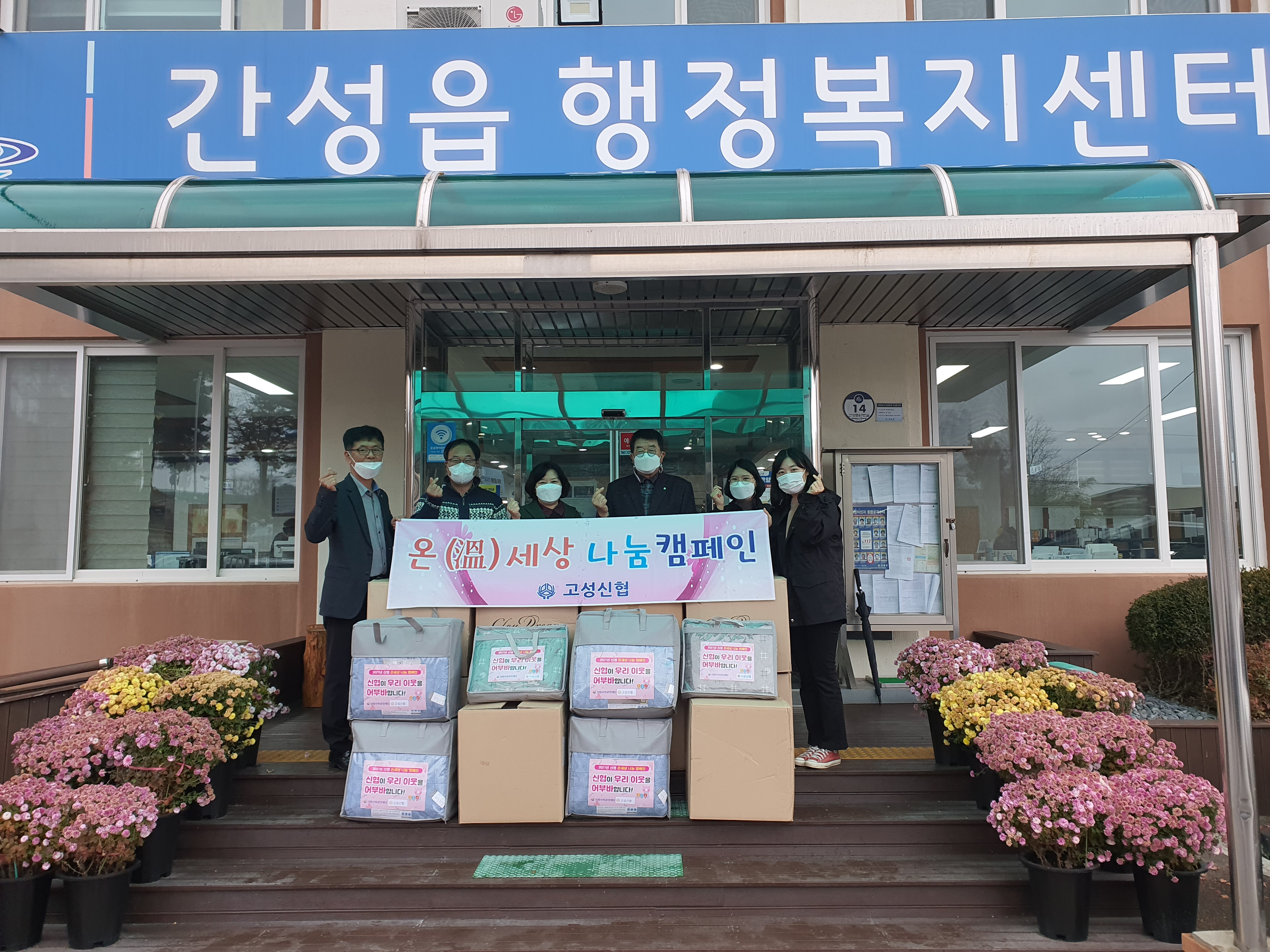 [강원사회복지신문 이정환 기자]=고성신협(이사장 한창영)은 지난 11월 30일(화) 간성읍 행정복지센터에 '온(溫)세상 나눔 캠페인'의 일환으로 겨울맞이 난방용품(전기장판, 이불 등) 20점을 기탁하였다. 한창영 이사장은 "'온(溫)세상 나눔 캠페인'은 지역사회와 함께 울고 웃는 신협의 가치를 잘 나타낸 대표적은 사회공헌...