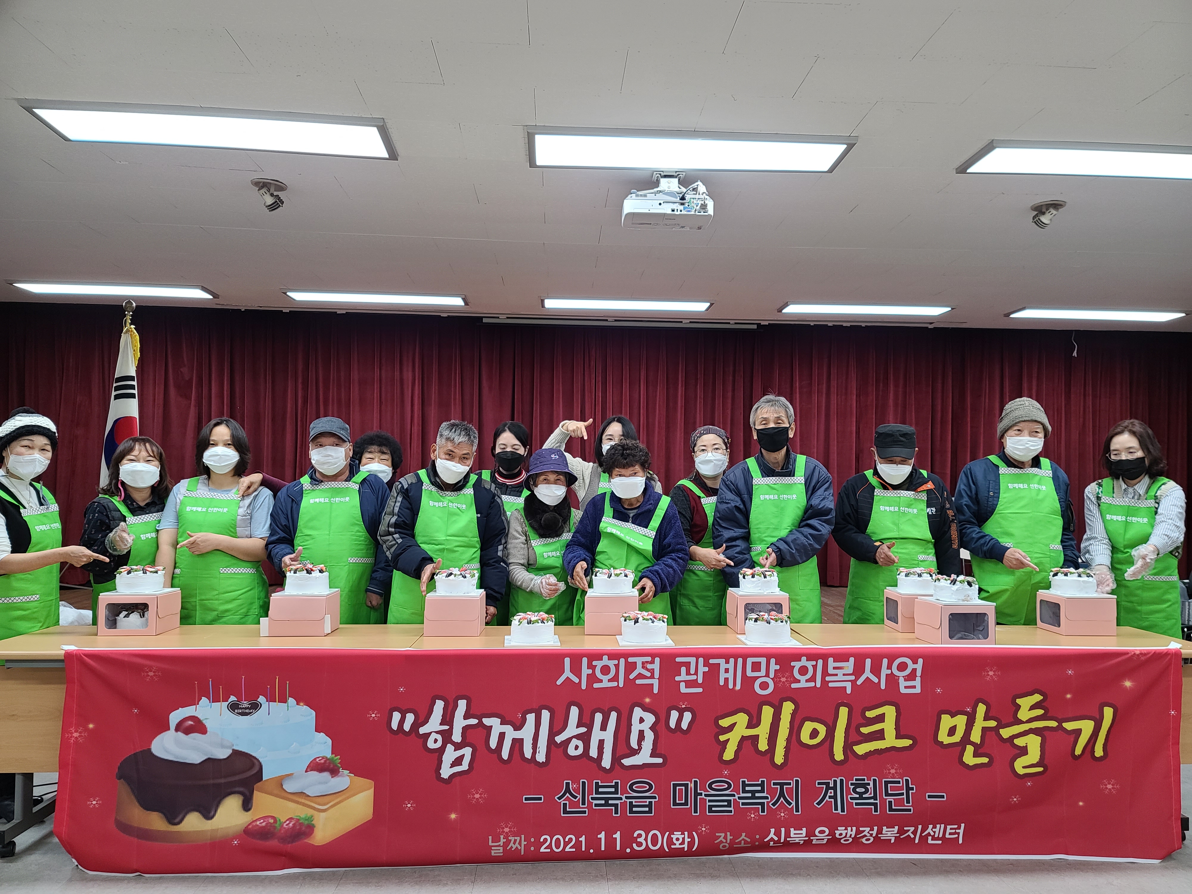 [강원사회복지신문 홍기한 기자]=춘천시 신북읍 마을복지계획단은 지난 11월 30일 신북읍 행정복지센터 2층 대회의실에서 케이크 만들기 행사를 진행했다.