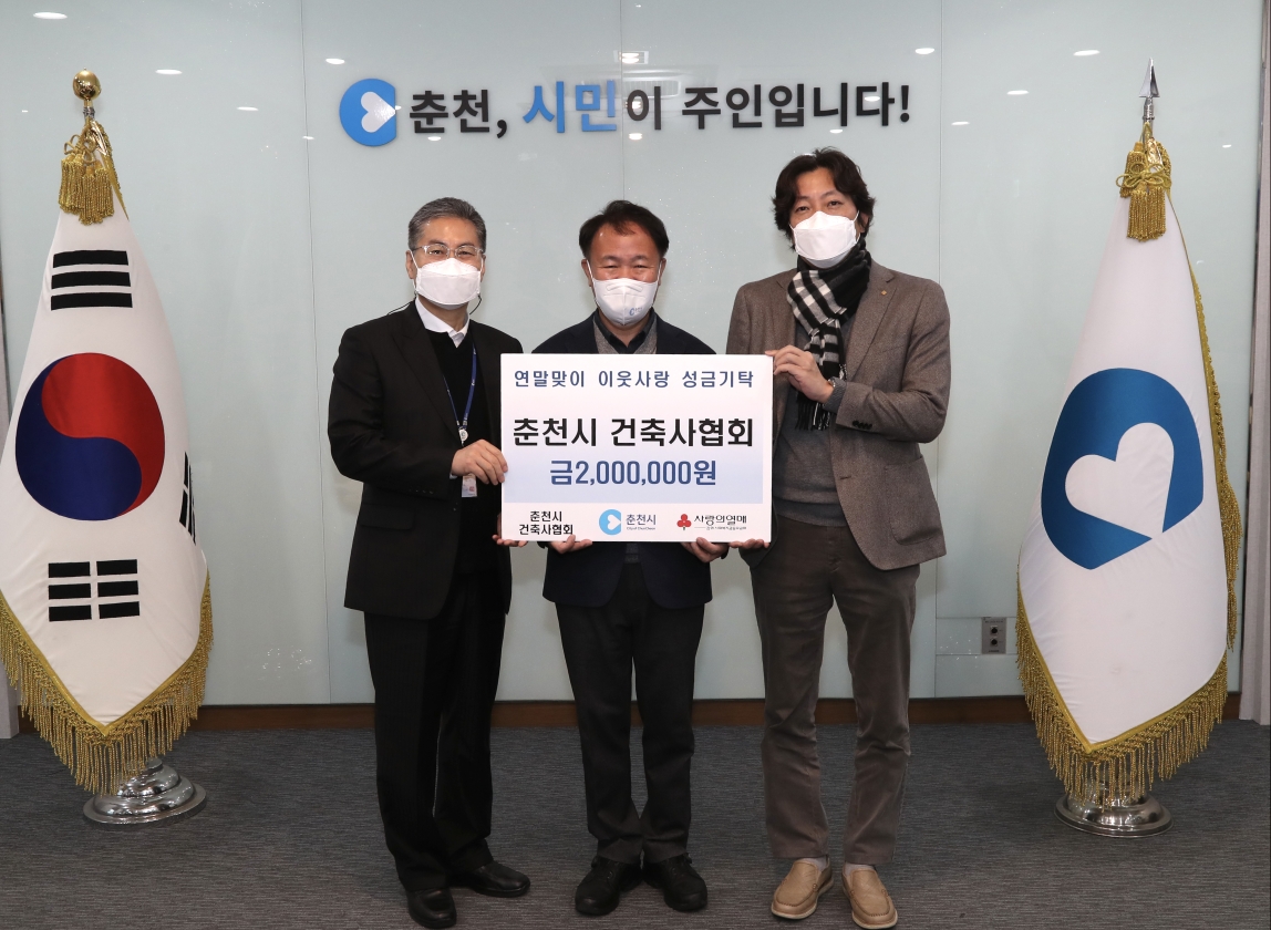 [강원사회복지신문 서은진 기자]=춘천시 건축사협회(회장:조덕규)는 지난 11월 30일 시청 접견실에서 연말을 맞아 200만원을 춘천시정부에 기부했다.