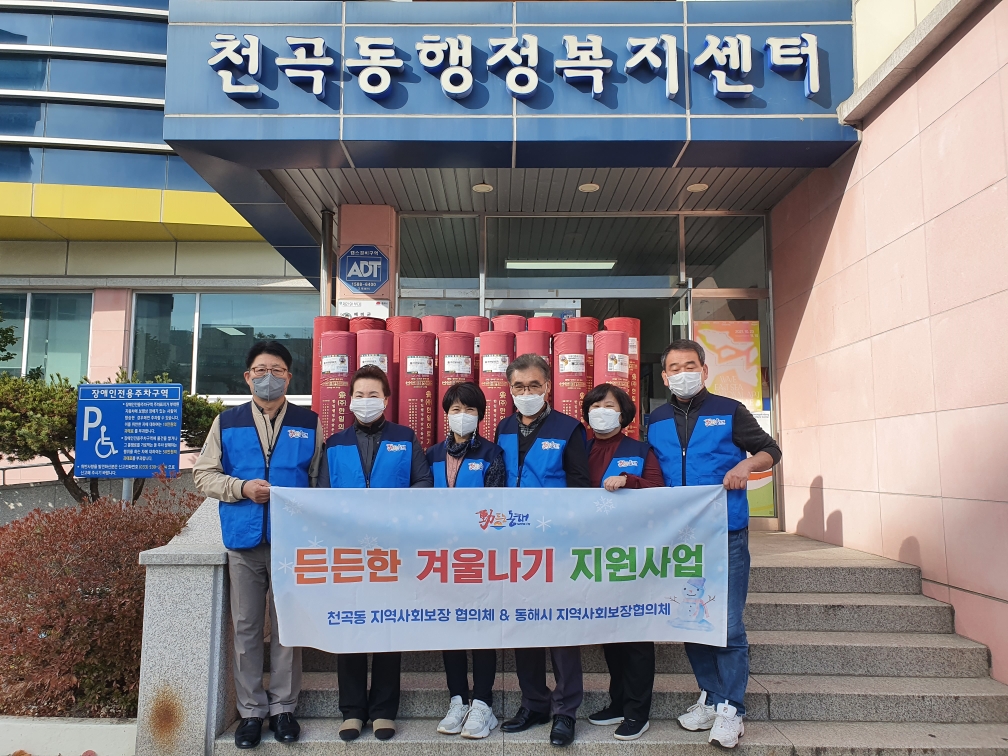 [강원사회복지신문 이정환 기자]=동해시 천곡동 지역사회보장협의체(위원장 김해경)는 지난 11월 15일 '든든한 겨울나기 지원사업'을 실시했다고 밝혔다. 이번 사업은 지역사회보장협의체 특성화 공모사업으로 동절기 맞춤형 종합서비스 지원을 위해 마련됐으며, 대상자들의 애로사항에 따라 난방기기(전기매트) 및 저장 식품...