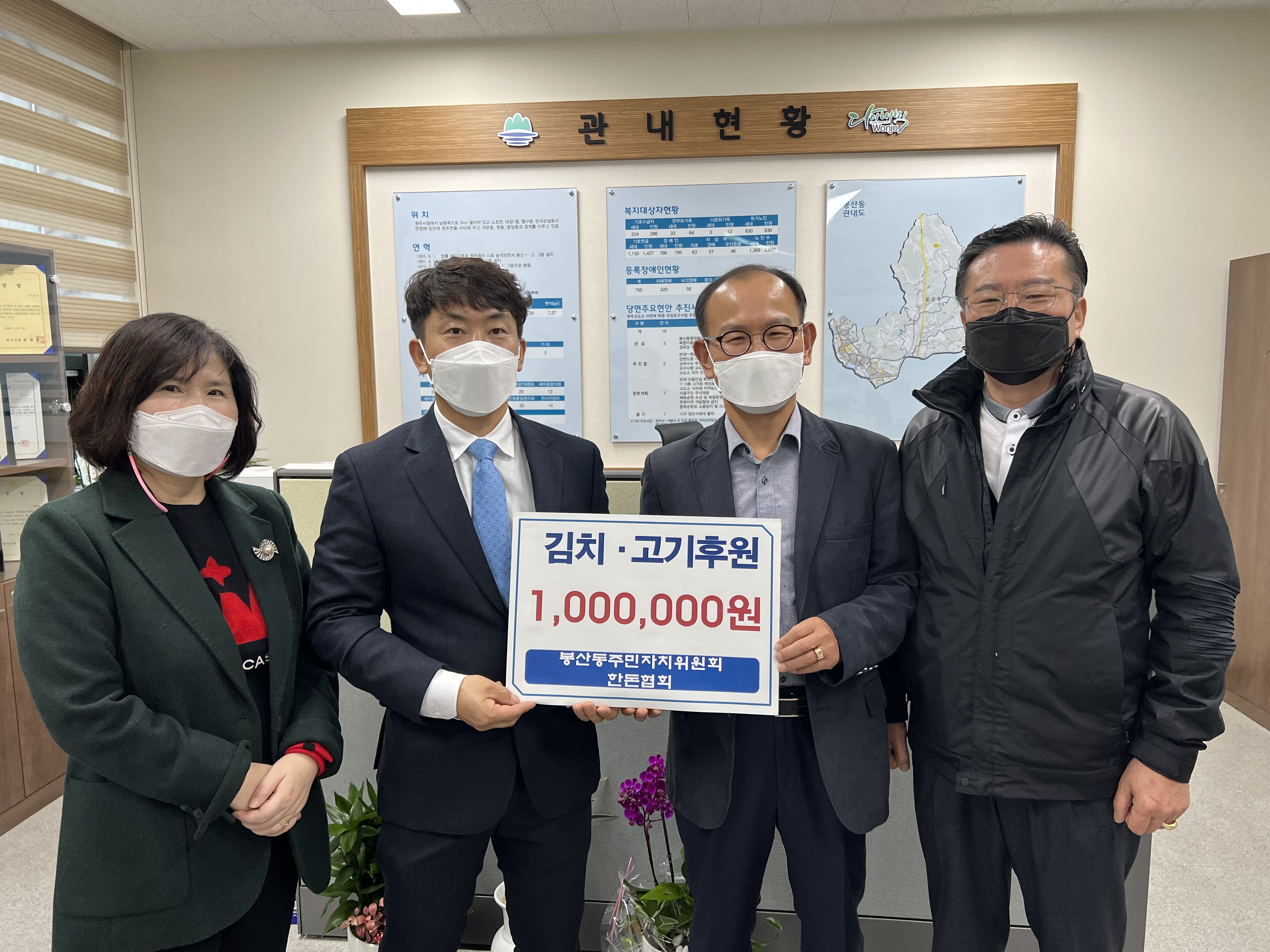 [강원사회복지신문 서은진 기자]=원주시 봉산동 주민자치위원회(위원장 진왕국)는 지난 11월 12일 100만 원 상당의 김장김치와 돼지고기(한돈협회 후원)를 지역의 어려운 이웃을 위해 봉산동 행정복지센터에 전달했다.