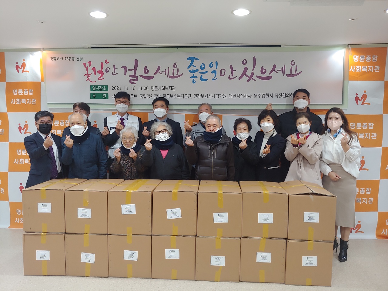 [강원사회복지신문 유경수 기자]=원주 명륜종합사회복지관에서는 지난 11월 16일 '연말연시 취약계층 따뜻한 겨울나기' 사업을 위한 후원 전달식이 진행되었다. 참수리 인크루트, 국립공원공단, 한국보훈복지공단, 건강보험심사평가원, 대한적십자사, 원주경찰서 직장협의회까지 총 6개의 기관·단체에서 마음을 모았으며, 총...