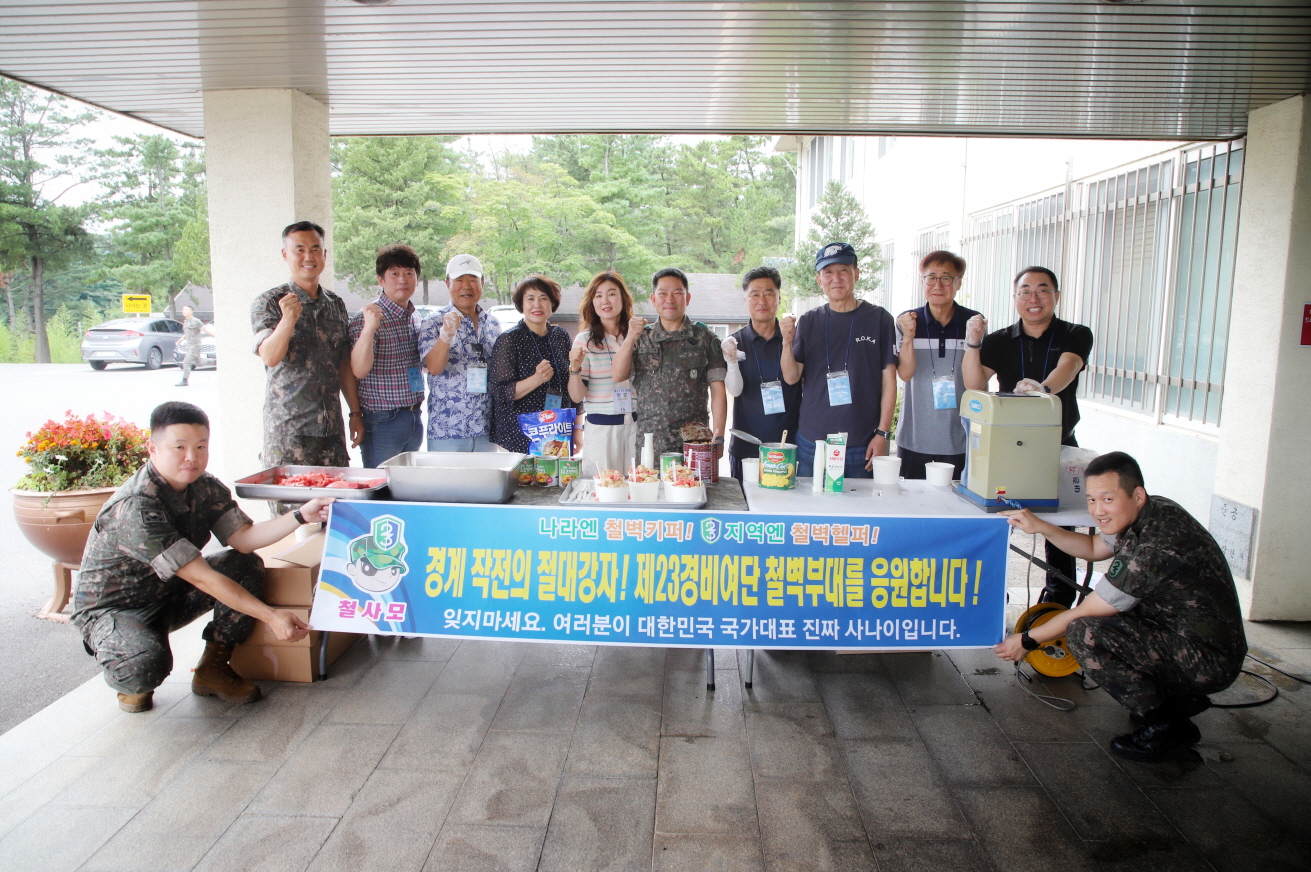 [강원사회복지신문 김종한 기자]=삼척시자원봉사센터 철사모 봉사단(회장 김성진)은 지난 7월 19일(수) 전투지휘훈련(BCTP)에 여념이 없는 제23경비여단을 방문해 즉석에서 팥빙수를 만들어 장병들을 위문했다. 이번 위문은 긴 장마와 폭염에 훈련으로 고생하는 제23경비여단 장병들을 위해 철사모 봉사단이 이동식 팥빙수 기...