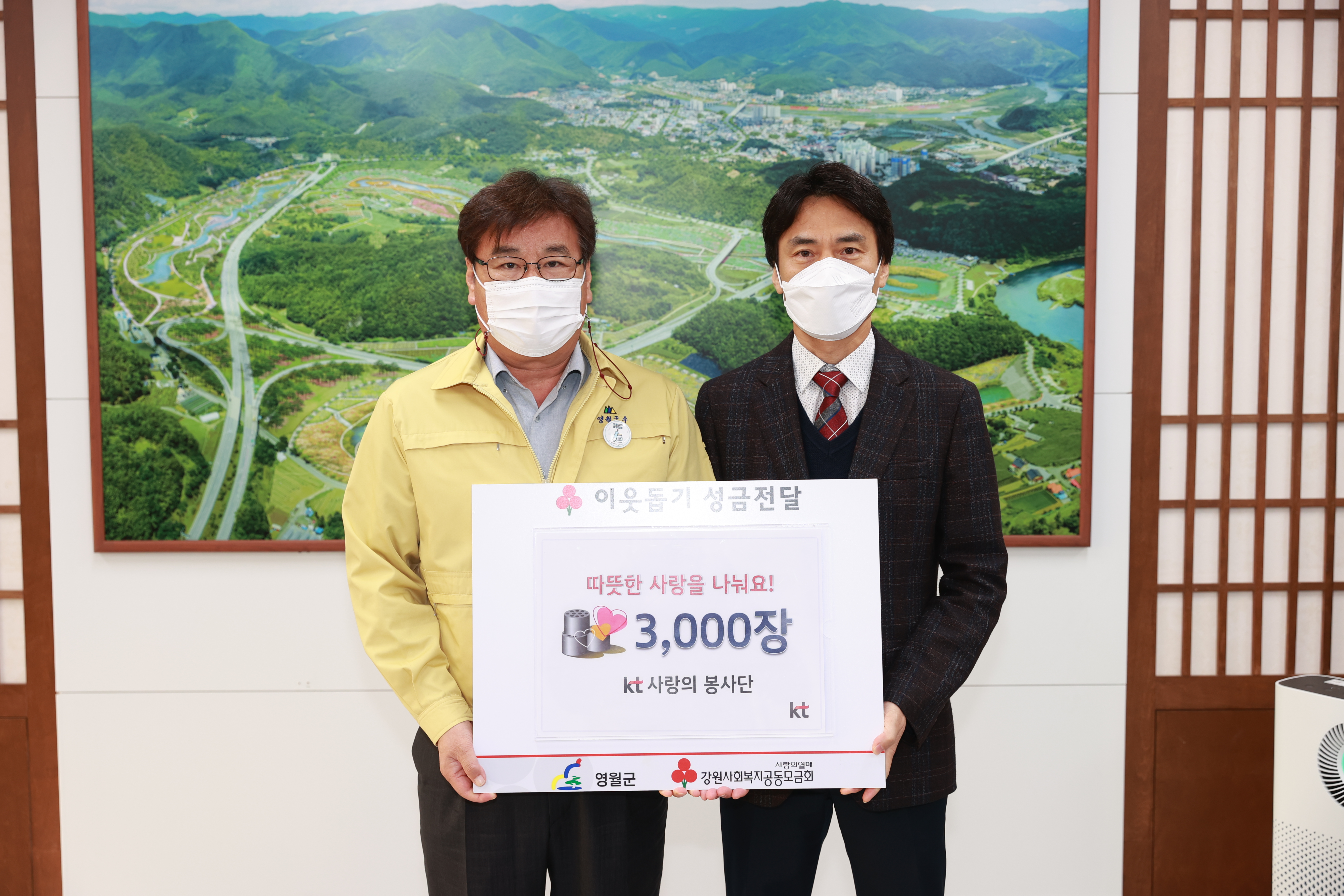 [강원사회복지신문 홍기한 기자]=KT영월지점은 동절기를 맞이하여 지난 11월 4일 산솔면 독거노인, 장애인가구 등 저소득층 가구에 '사랑의 연탄' 3000장을 '사랑의 연탄나누기' 봉사활동을 통해 직접 전달하며 추운 겨울날 따스한 온정을 베풀었다. 이에 면 관계자는 "KT영월지점 직원들과 함께 진행된 이번 봉사활동은 이웃...