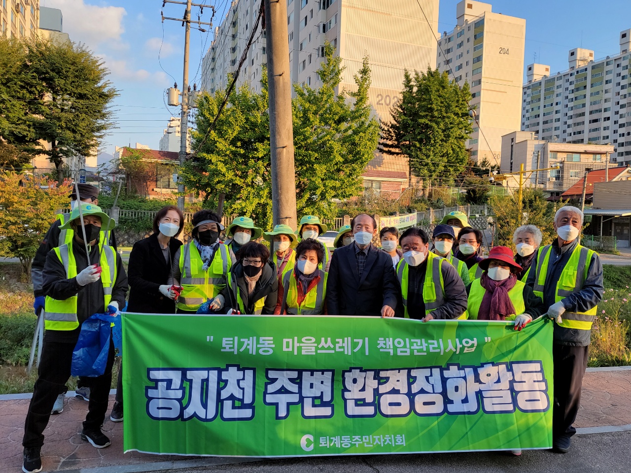 [강원사회복지신문 유경수 기자]=춘천시 퇴계동 주민자치회(회장:김대규)는 지난 10월 20일 퇴계천 무릉교 일대에서 마을쓰레기 책임관리사업에 참여하는 집하장 지킴이들과 함께 쾌적한 마을환경 조성을 위한 쓰레기 줍기 등 환경정화 활동을 했다.
