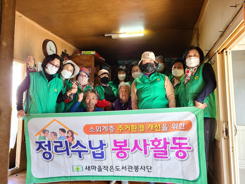 [강원사회복지신문 홍기한 기자]=새마을문고중앙회 춘천시지부(회장:이희순)는 지난 10월 20일 춘천시 신북읍 내 주거환경개선이 필요한 저소득 어르신 가구를 방문해 정리수납 봉사활동을 했다.