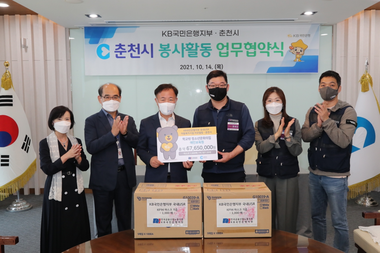 [강원사회복지신문 유경수 기자]=춘천시정부와 KB국민은행지부는 지난 10월 14일 오전 11시 접견실에서 봉사활동 업무협약을 맺었다.