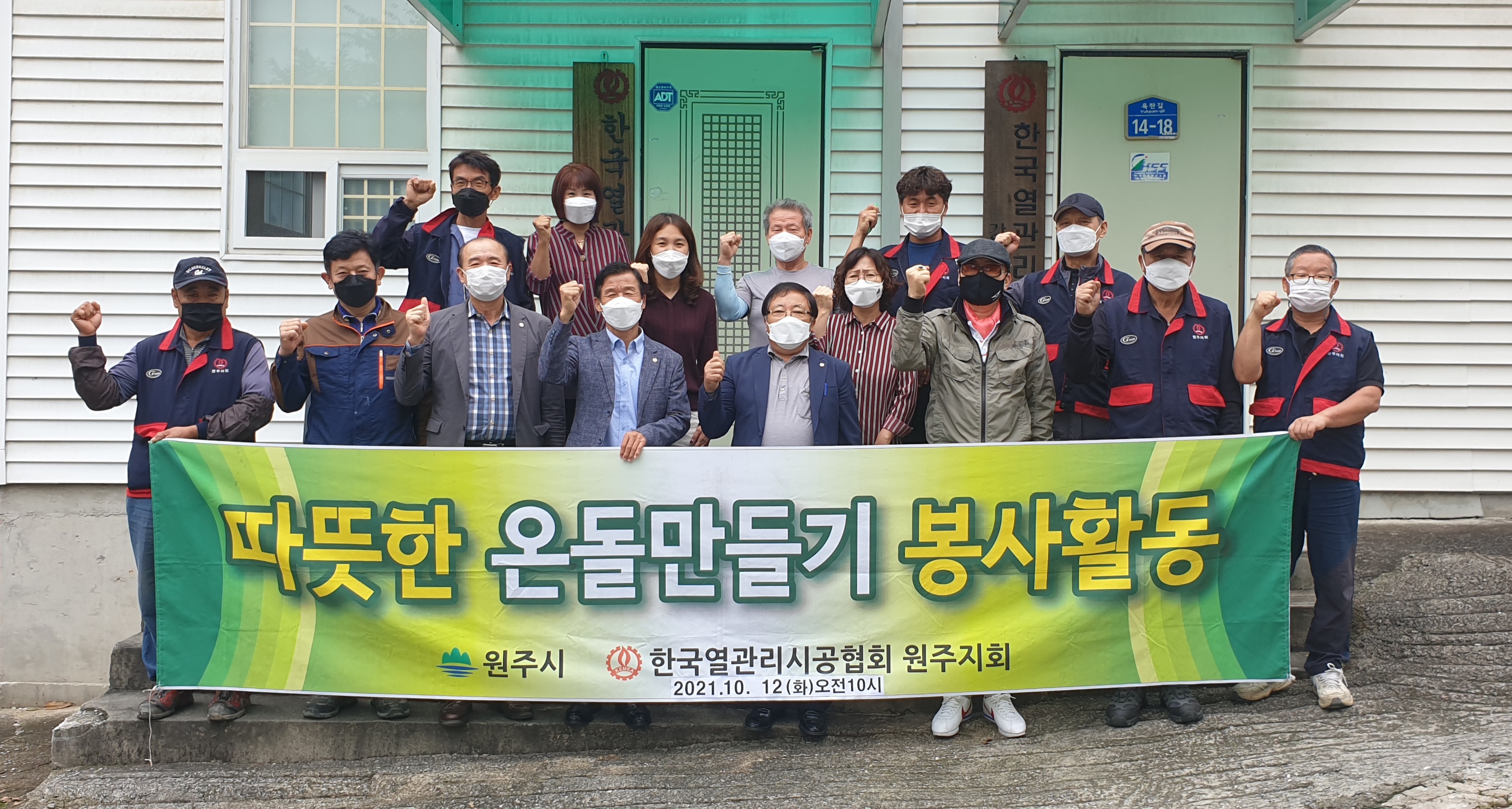 [강원사회복지신문 유경수 기자]=한국열관리시공협회 원주지회(지회장 곽의신)는 지난 10월 12일 따뜻한 온돌 만들기 봉사 발대식을 열고 주거 취약가구 38가구를 대상으로 난방시설 개보수에 나섰다. 한국열관리시공협회 원주지회는 회원들의 전문 능력을 재능기부 형태로 제공하고 원주시는 개보수에 필요한 보일러 구입과...