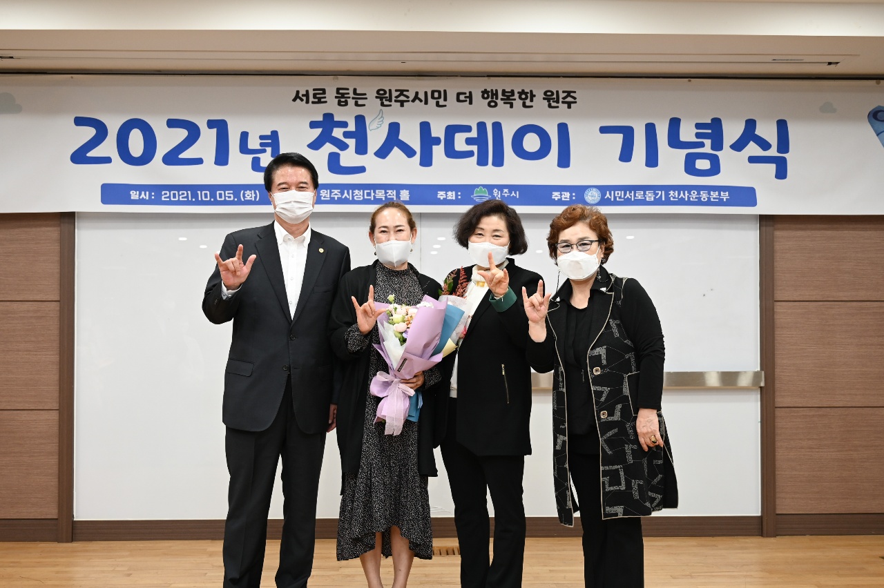[강원사회복지신문 서은진 기자]=10월 5일 오후 2시 원주시청 지하 1층 다목적홀 천사운동 유공자 표창패 수여, 천사나비 걷기 챌린지 기금 전달식 등 진행 원주시가 주최하고 시민서로돕기 천사운동본부에서 주관하는 2021년 천사데이 기념식이 지난 10월 5일 오후 2시 시청 지하 1층 다목적홀에서 열렸다. 기념식은 천사나...