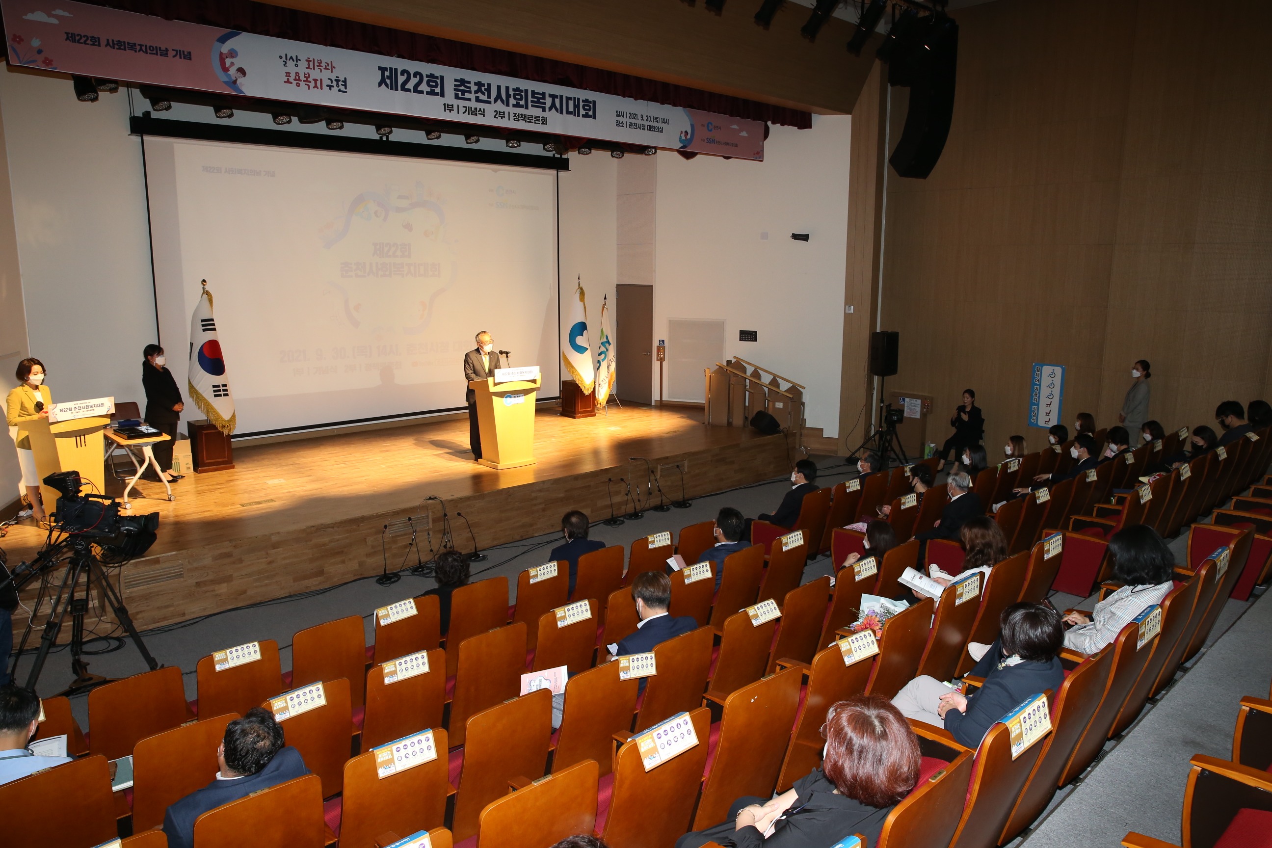 [강원사회복지신문 홍기한 기자]='기념식 및 정책토론회' 온라인 생중계 춘천시사회복지협의회(회장 신두진)는 춘천시가 주최하고 춘천시사회복지협의회가 주관하는 제22회 사회복지의 날 기념 제22회 춘천사회복지대회를 지난 9월 30일 오후 2시, 춘천시청 대회의실에서 개최하였다. 매년 사회복지의 날을 맞아 개최한 춘천...
