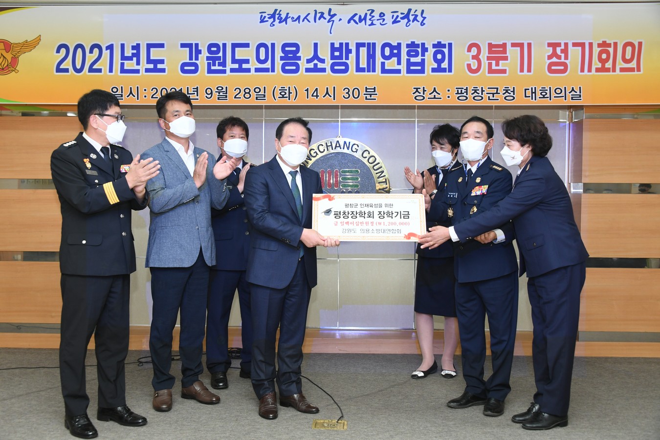 [강원사회복지신문 서은진 기자]=강원도의용소방대연합회(회장 손정수, 이우임)는 지난 9월 28일 평창군청 대회의실에서 정기회의를 개최하고, 평창지역 인재육성을 위한 장학금 120만원을 전달했다. 강원도의용소방대연합회는 강원도 18개 시군을 순회하며 분기별로 정기회의를 개최하고 있으며, 장학금은 도내 시·군 의용...