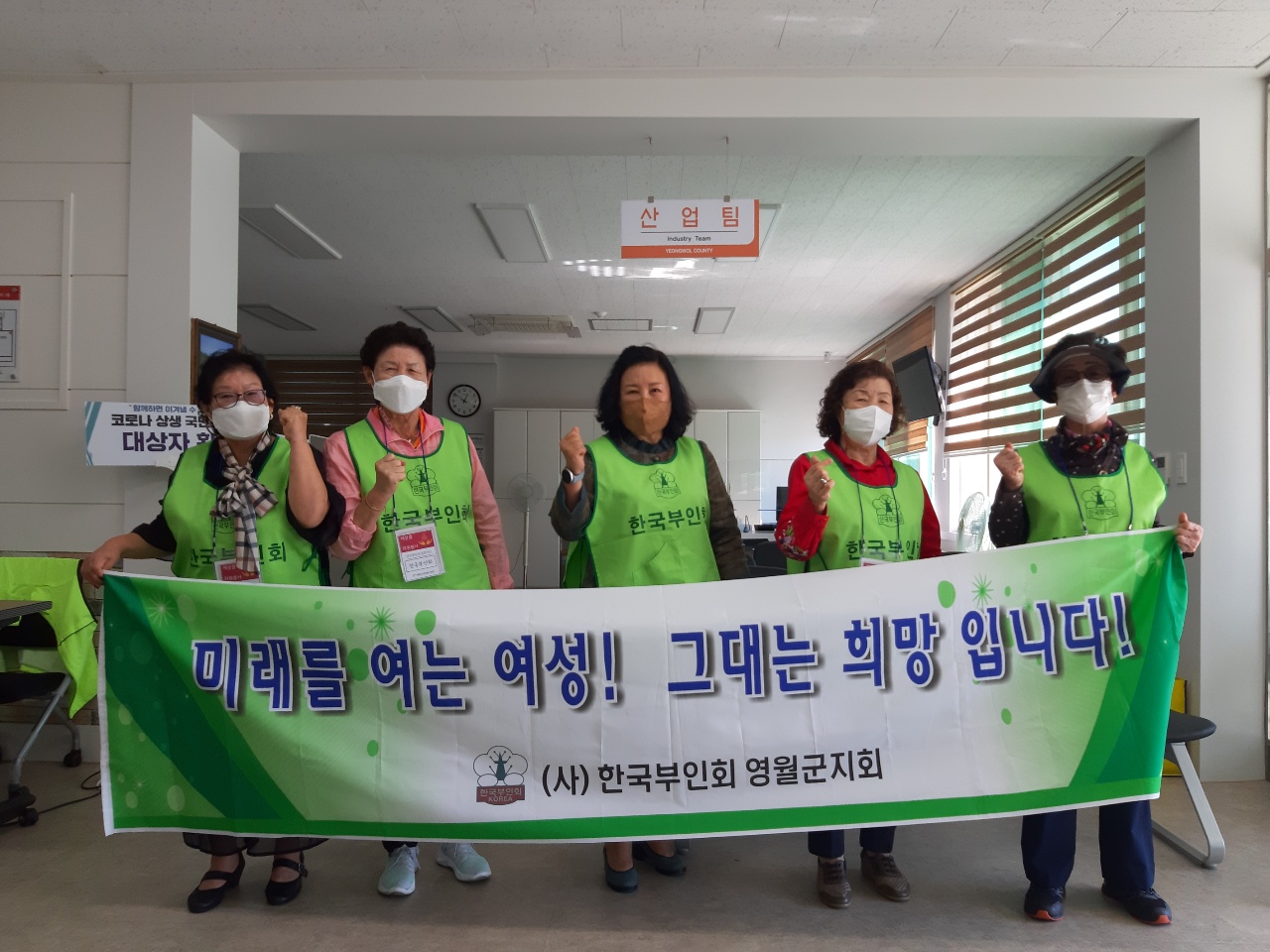 [강원사회복지신문 홍기한 기자]=영월군 세경대학교 야간대학생들과 한국부인회(회장 권경순) 2단체가 지난 9월 30일 코로나 상생 국민지원금 자원봉사 활동에 각각 오전, 오후에 참여했다.