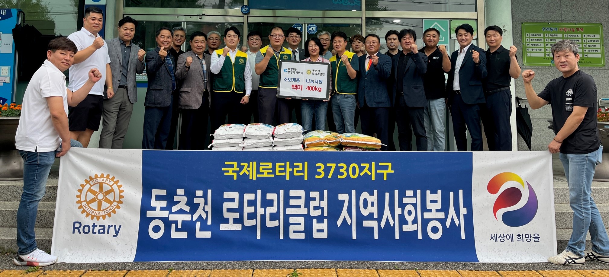 [강원사회복지신문 홍기한 기자]=동춘천로타리클럽(54대 회장 김장섭 외 회원 일동)은 지난 7월 13일 춘천시 후평1동 행정복지센터를 방문해 저소득 취약계층을 위한 양곡 400kg을 전달했다.