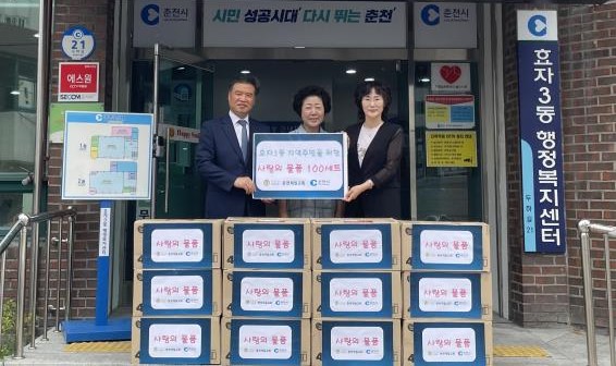 [강원사회복지신문 이정환 기자]=춘천제일감리교회(담임목사 이용호)는 지난 7월 13일 춘천시 효자3동 주민을 위한 사랑의 물품 100세트를 효자3동 행정복지센터에 전달했다.