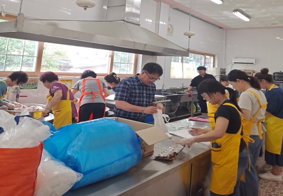 [강원사회복지신문 이정환 기자]=평창군 사회복지협의회(회장 이효석)와 대한적십자사 봉평봉사회(회장 황태란)는 지난 7월 13일 평창군 봉평면 복지회관(다솜관)에서 관내 홀몸 어르신, 장애인 등 취약계층 100가구에 정성을 담아 끓인 삼계탕을 포장·전달하는 사랑이음 밥차를 운영하였다.