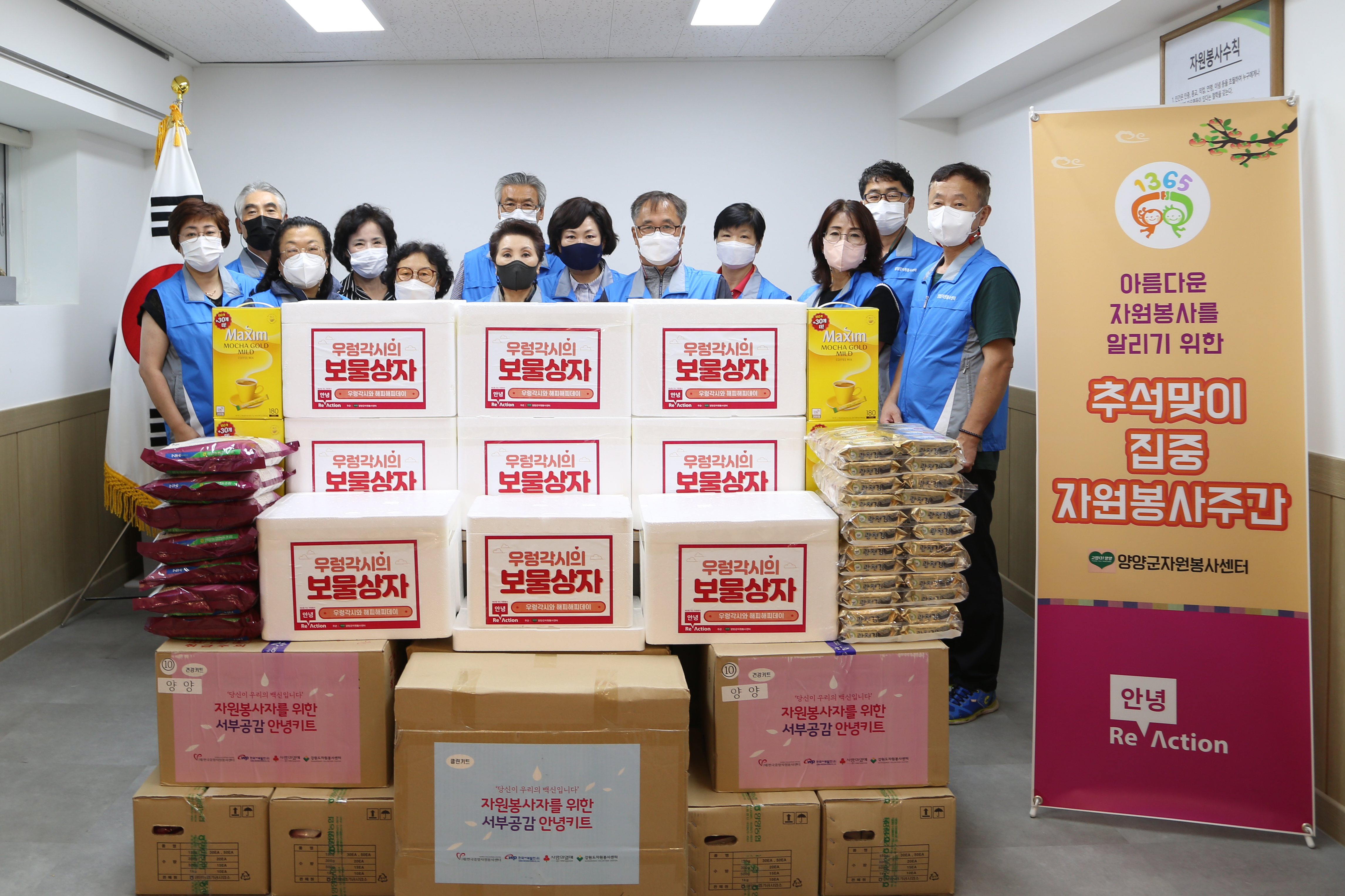 [강원사회복지신문 김종한 기자]=양양군자원봉사센터(센터장 한정임)는 지난 9월 1일(수) 오후 3시, 양양군자원봉사센터 1층 회의실에서 양양자원봉사대(회장 김상기)와 함께 추석맞이 '우렁각시와 보물상자' 전달식을 진행하였다. 매달 소외계층 가구에서 재가봉사활동을 펼쳐온 양양자원봉사대 회원 20여명은, 이번 추석을...