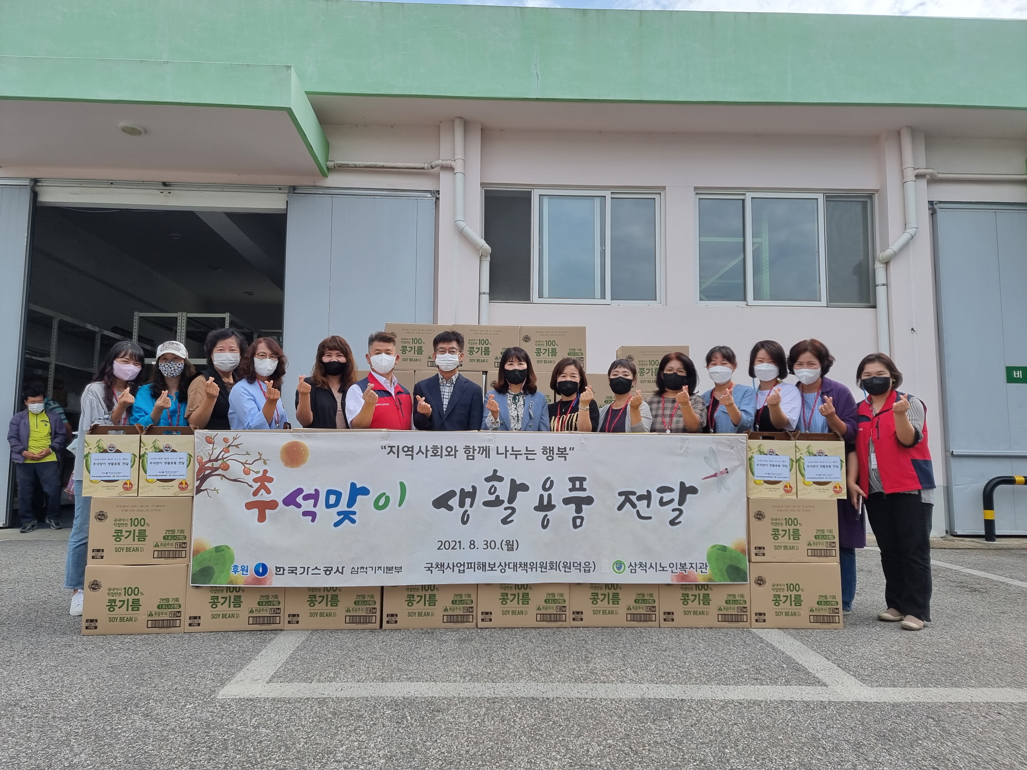 [강원사회복지신문 이정환 기자]=한국가스공사 삼척기지본부에서는 지난 8월 30일 추석을 앞두고 450만원 상당의 식용유를 삼척시노인복지관에 후원했다. 후원물품은 식용유 선물세트 330세트로 삼척시노인복지관 노인맞춤돌봄서비스를 받고 있는 저소득 독거어르신으로 원덕읍 133명, 가곡면 32명 총 165명에게 전달했다.