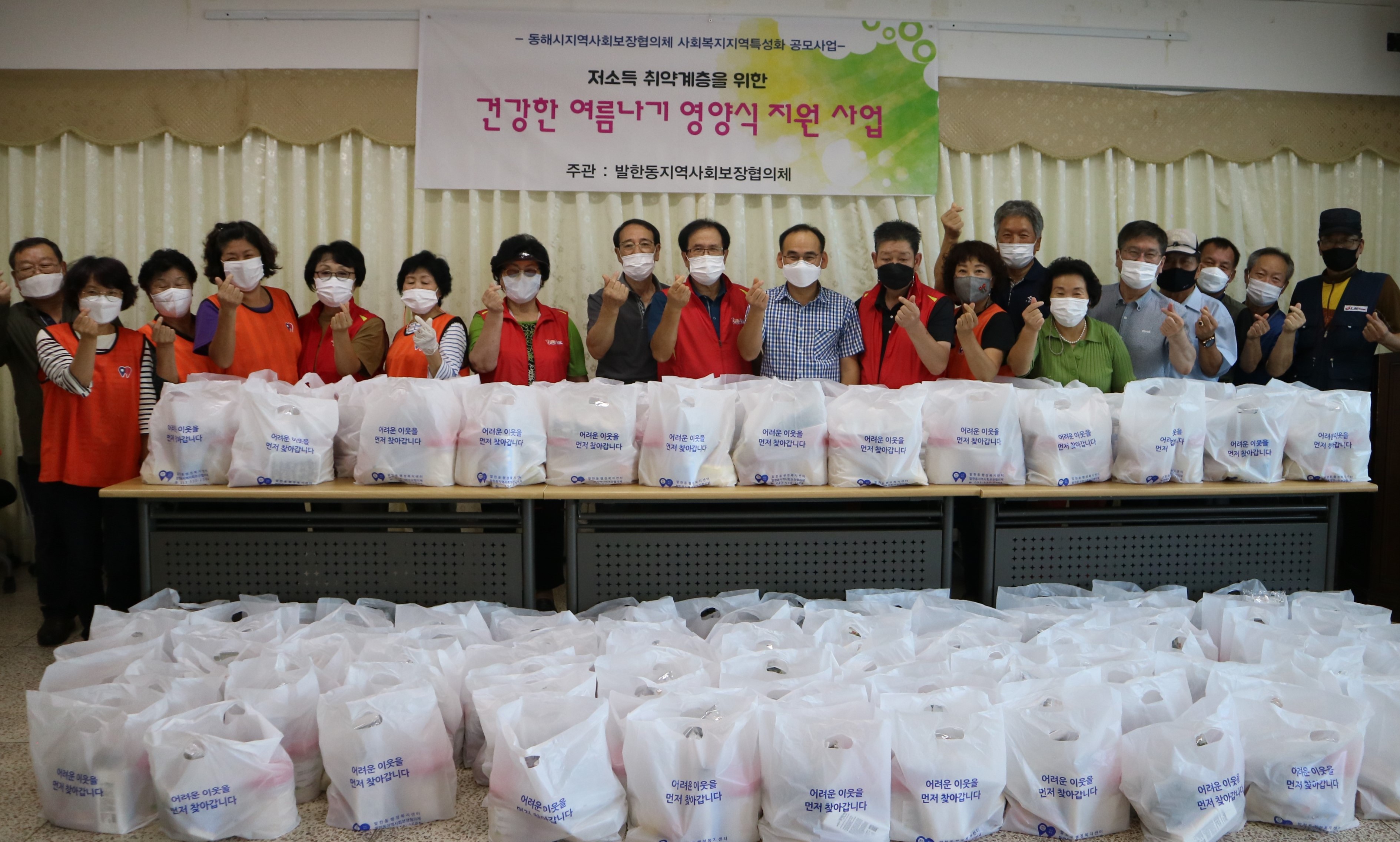 [강원사회복지신문 김종한 기자]=동해시 발한동지역사회보장협의체(위원장 최경화)는 지난 8월 28일 발한동행정복지센터에서 취약계층을 위해 '건강한 여름나기 영양식 지원 사업'을 추진했다 이번 사업은 2021년 사회복지 지역 특성화 사업으로 받은 지원금과 자부담으로 손소독제 및 과일, 떡 등을 담은 선물 꾸러미 120개...