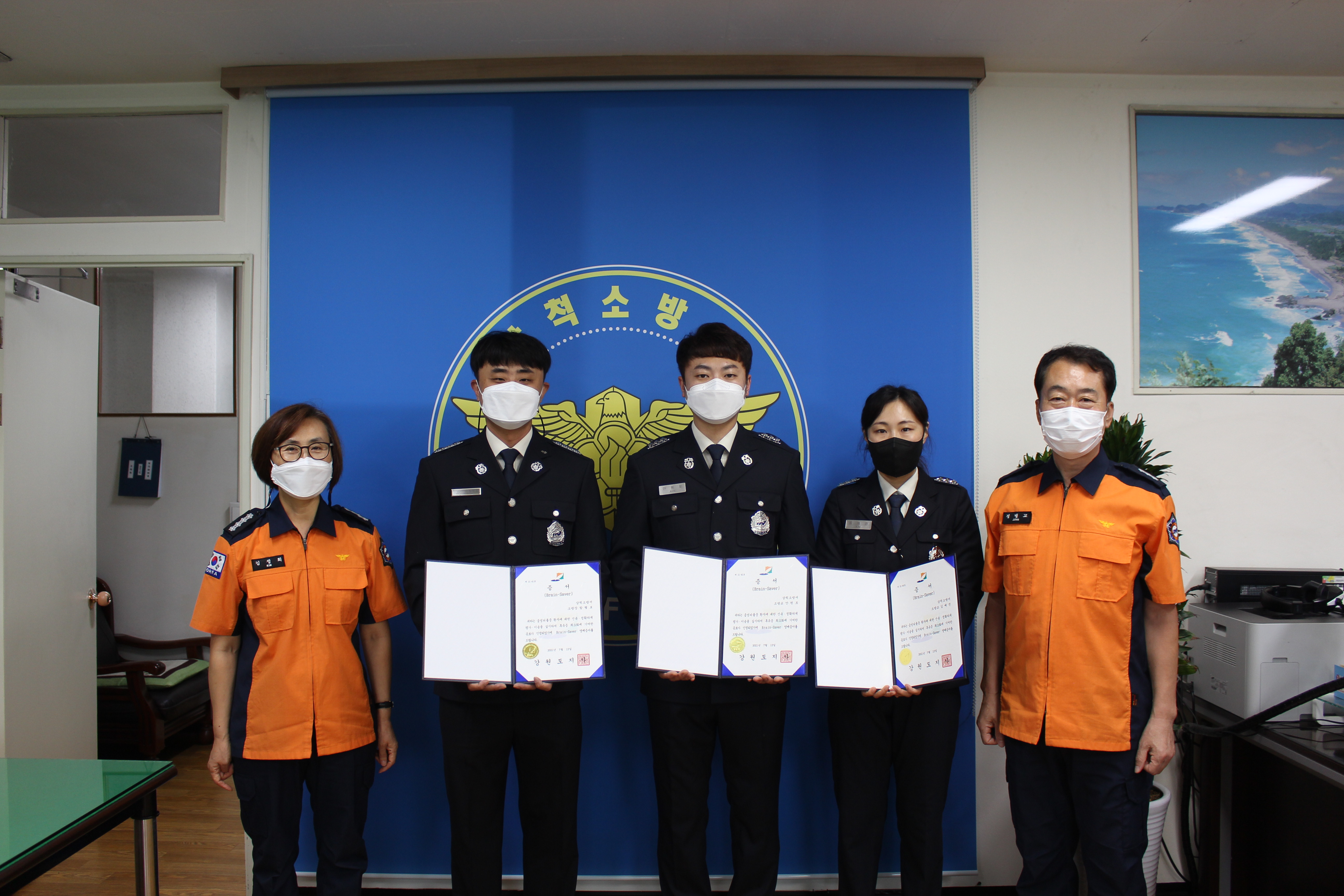 [강원사회복지신문 김종한 기자]=삼척소방서(서장 김정희)는 지난 8월 18일 오전 9시 신속한 응급처치로 시민의 소중한 생명을 구한 구급대원 3명에게 브레인세이버 인증서와 배지를 수여했다. 이번 브레인세이버 수여의 주인공은 함형보소방장, 안원모소방교, 김예진소방교 등 구급대원 3명이다. 이들 3명은 지난 2월 15일 ...