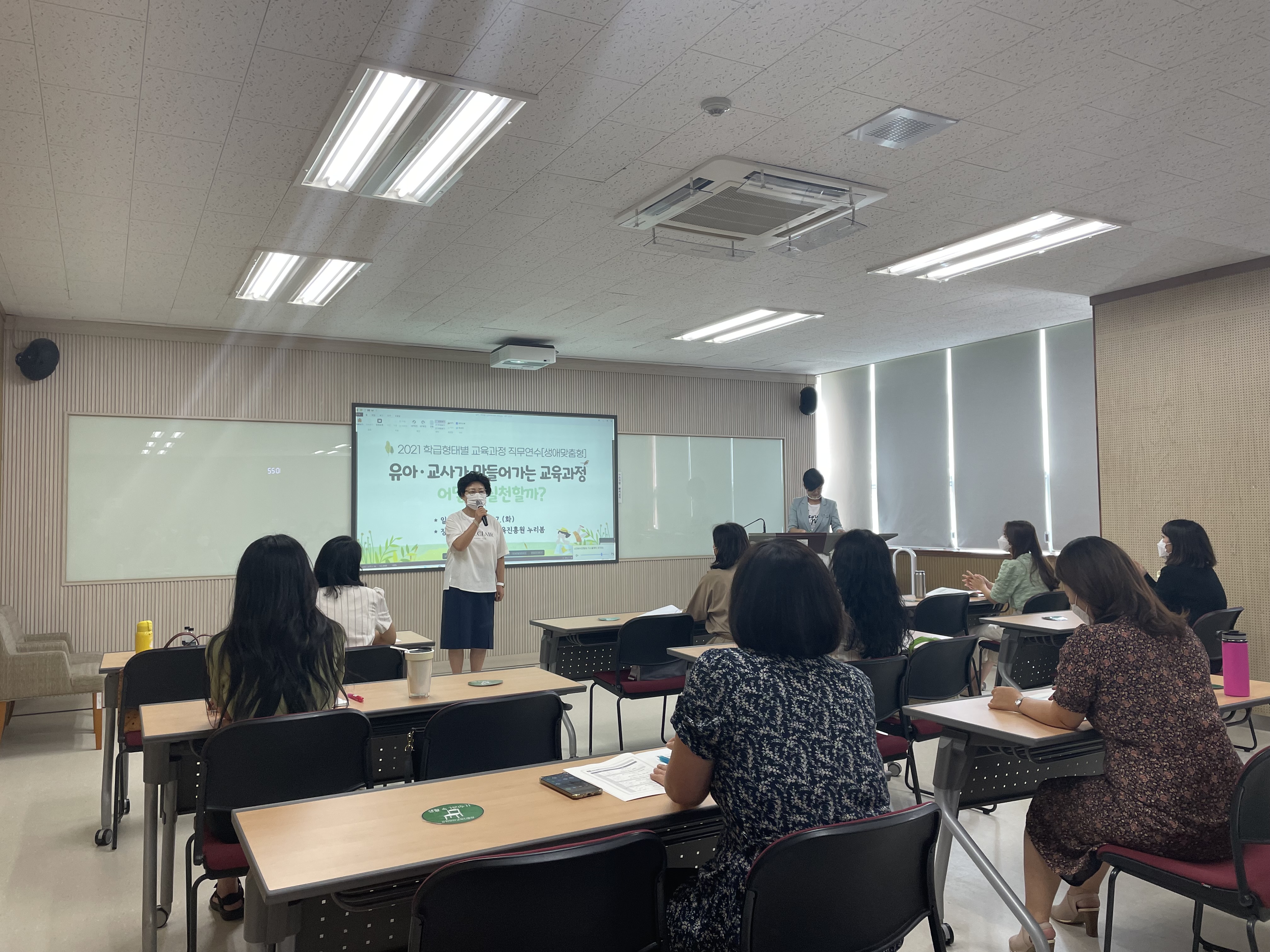 [강원사회복지신문 서은진 기자]="유아·교사가 함께 만들어가는 교육과정 어떻게 실천할까?" 강원유아교육진흥원(원장 강선옥)은 지난 8월 17일(화)~19일(목) 도내 국·공·사립유치원 교사와 유아담당 교육전문직원 중 희망자 21명을 대상으로 '학급형태별 교육과정 직무연수'를 추진한다고 밝혔다. 이번 연수는 '유아·교...