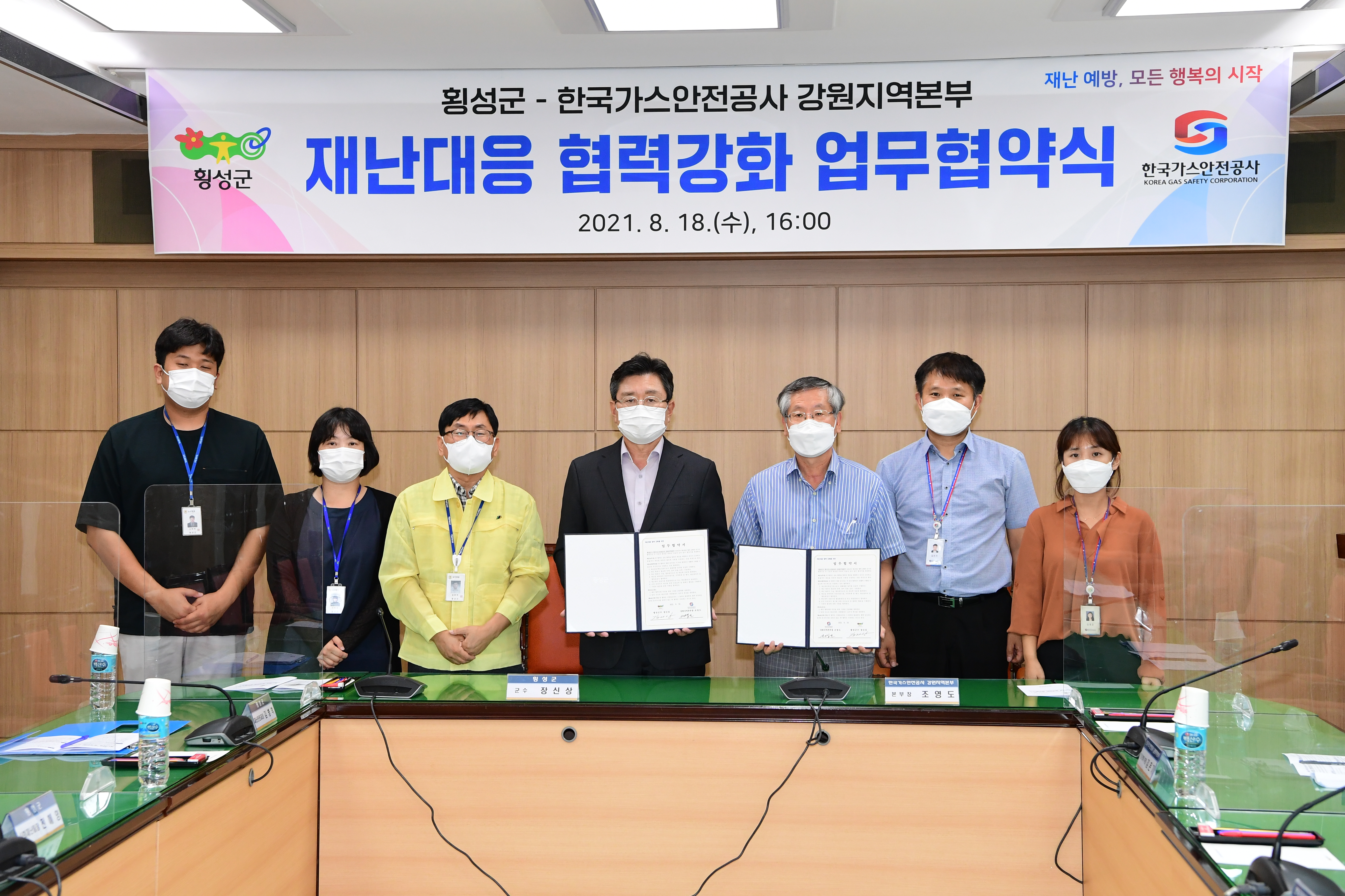 [강원사회복지신문 홍기한 기자]=횡성군(군수 장신상)은 재난대응 유관기관과의 협력 강화를 위하여, 지난 8월 18일 오후 4시 군청 소회의실에서 한국가스안전공사 강원지역본부(본부장 조형도)와 업무 협약을 체결한다고 밝혔다. 군은 최근 빈번하게 발생하는 주택화재 등 예측 불가능한 각종 재난에 유기적으로 대응하고 재...