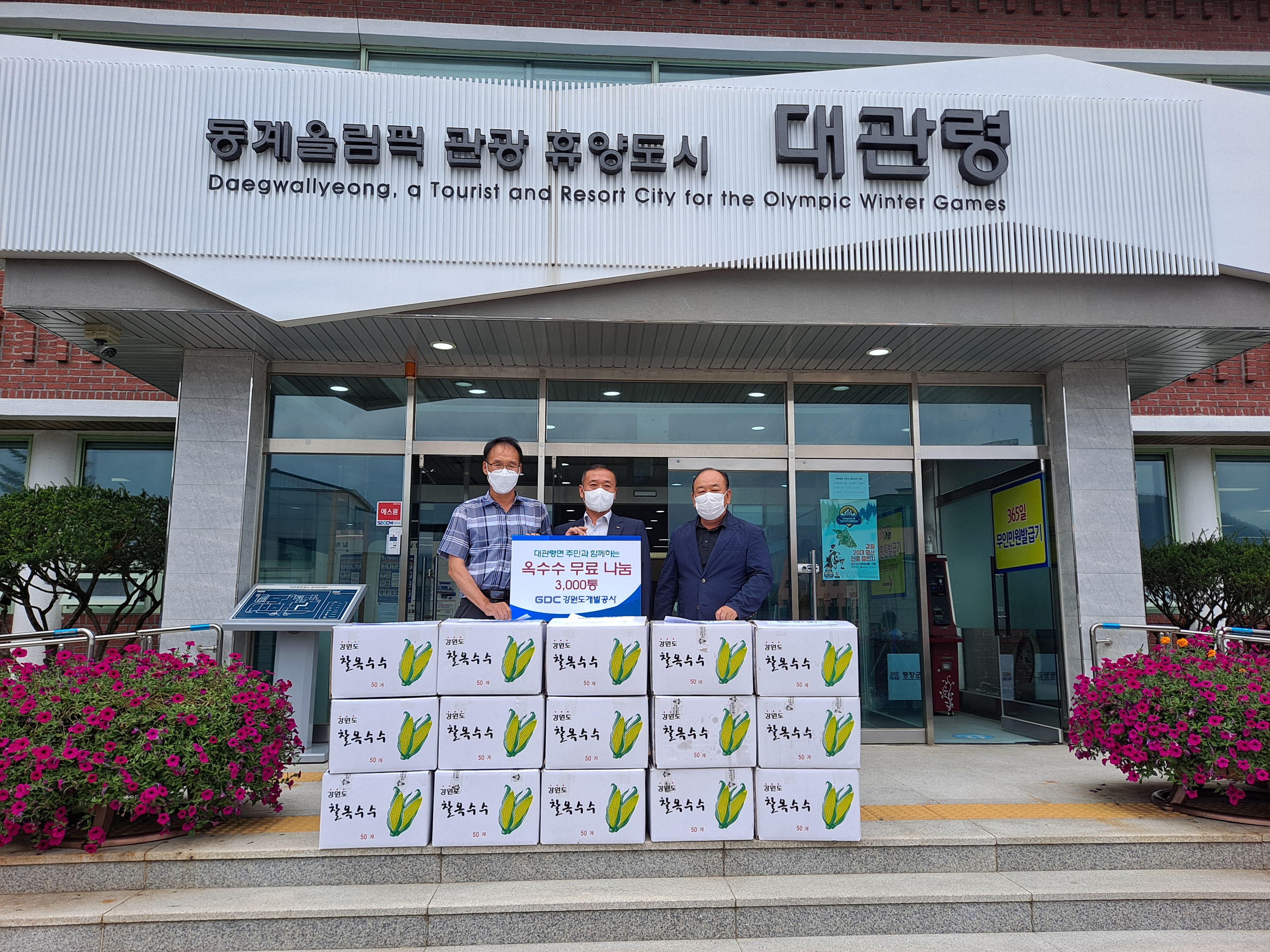 [강원사회복지신문 서은진 기자]=평창군 대관령면은 지난 8월 12일 강원도개발공사(사장 이만희)가 대관령면사무소(면장 신승호)를 찾아 직접 재배하고 수확한 옥수수 22자루(2,200개)를 기부하는 행사를 가졌다고 밝혔다. 그동안 강원도개발공사 직원들은 알펜시아리조트 내 크로스컨트리 뒤편 유휴 부지에서 지난 4월부터 ...