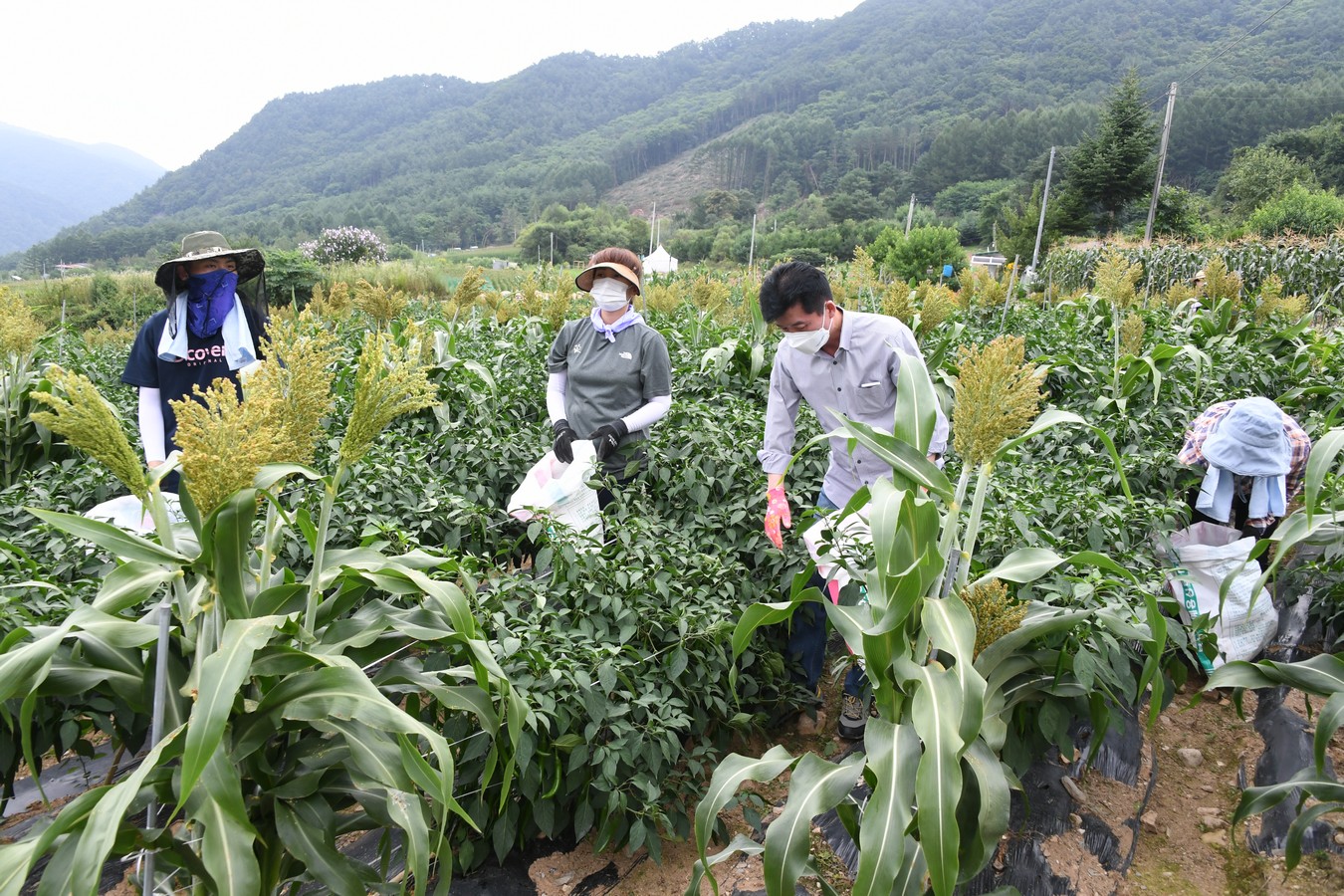 [강원사회복지신문 이정환 기자]=평창군청 정연길 부군수를 비롯한 대화면, 일자리경제과, 농업축산과 직원 30여 명은 지난 8월 12일 평창군 대화면 상안미리에서 양배추밭 비료살포와 고추따기 등 농촌 일손돕기 봉사활동을 펼쳤다.