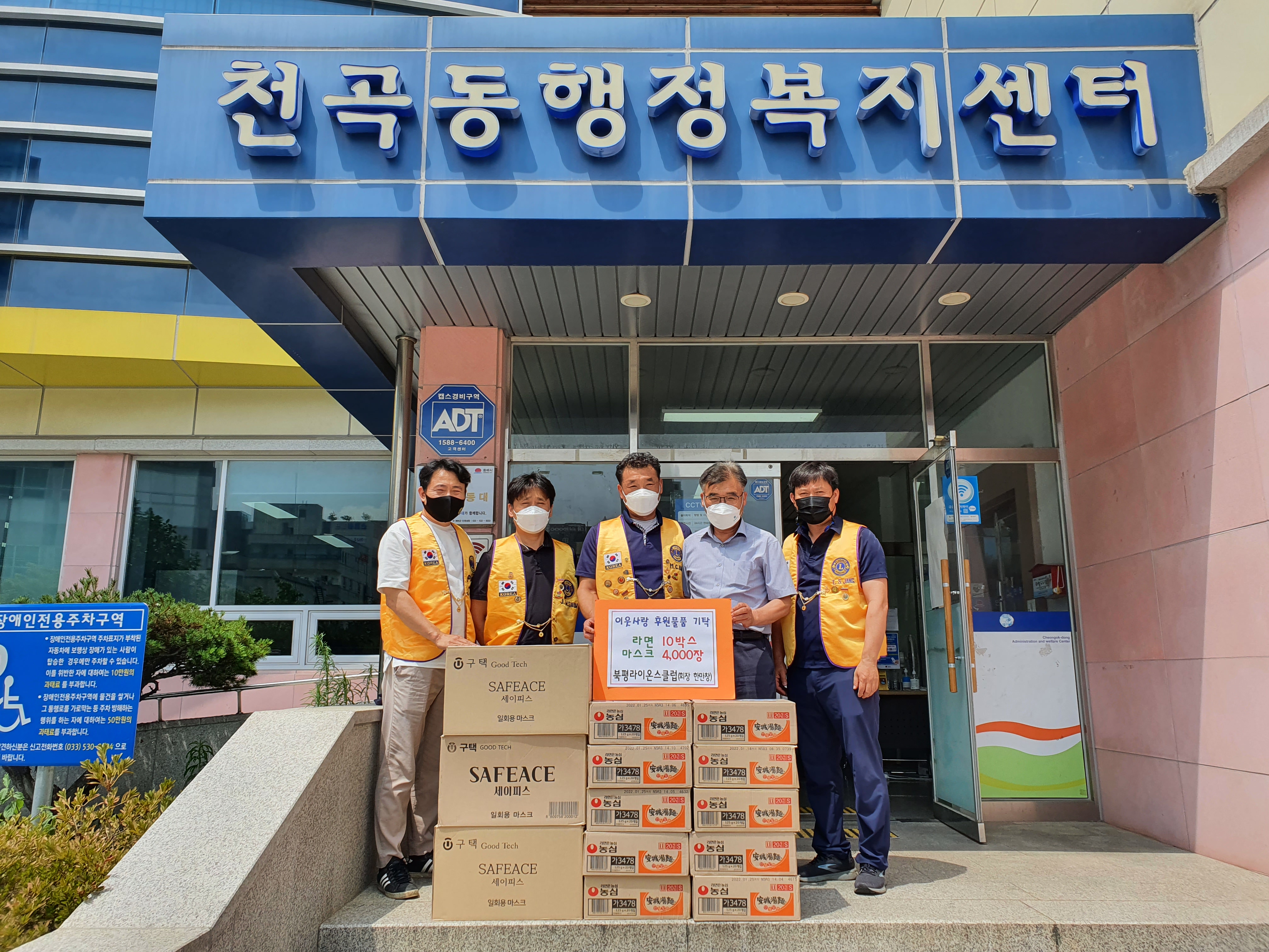 [강원사회복지신문 김종한 기자]=동해 북평라이온스클럽(회장 한만창)에서 지난 8월 11일 천곡동 행정복지센터(동장 김세환)를 방문해 관내 어려운 이웃을 위해 사용해 달라며 라면 10박스와 마스크 4천장을 기탁했다. 한만창 회장은 "코로나로 모두가 힘든 시기에 북평라이온스 클럽이 조금이나마 도움을 드리고자 이번에 라...