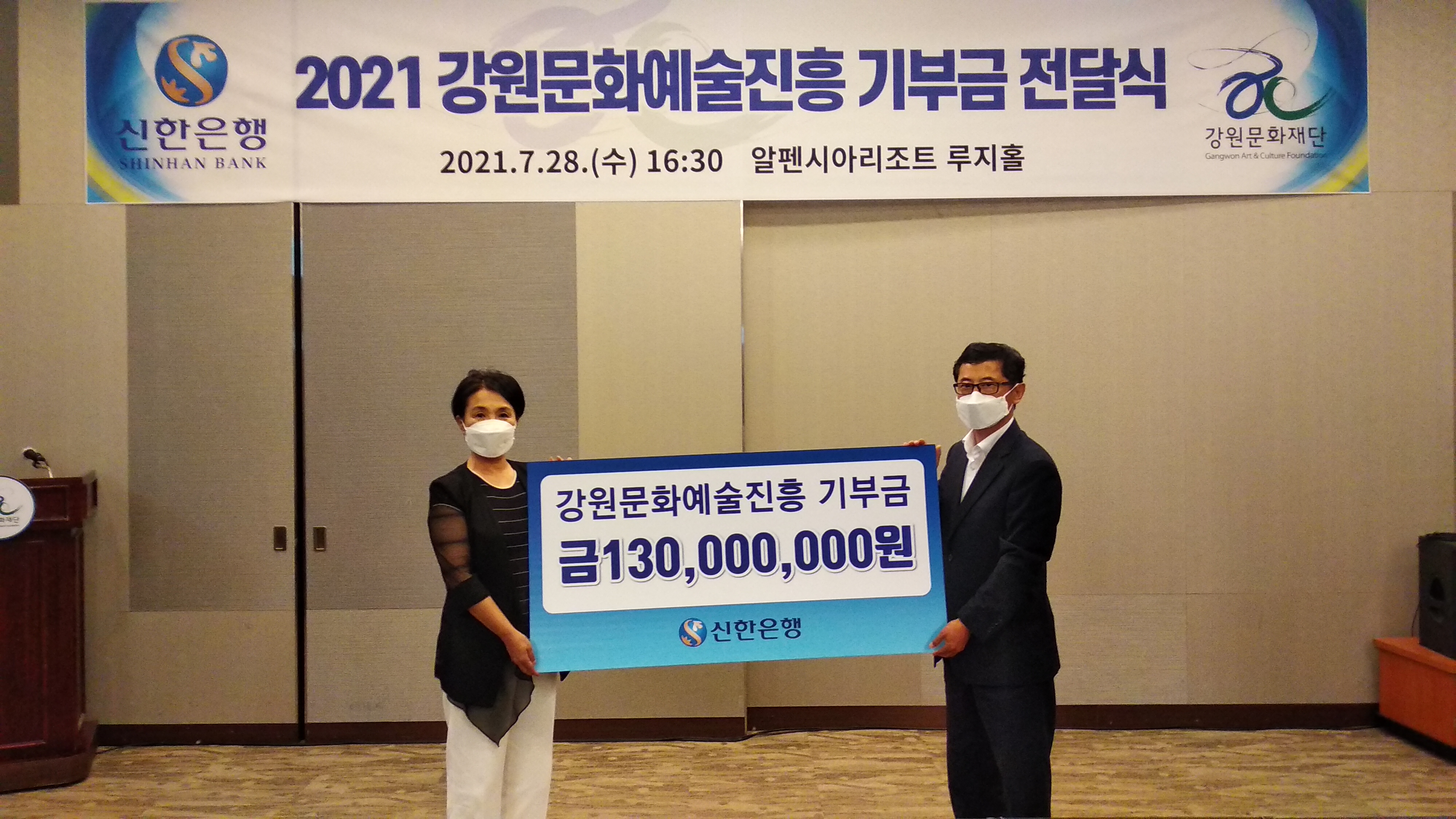 [강원사회복지신문 이정환 기자]=강원도 문화예술 진흥과 제18회 평창대관령음악제 성공개최 기원 강원문화재단(이사장 강금실)은 지난 7월 28일 오후 4시 30분 평창 알펜시아리조트에서 신한은행 강원본부(본부장 구춘서)로부터 1억 3천만 원의 기부금을 전달받았다고 밝혔다. 이날 기부금 전달식에는 강금실 강원문화재단 ...