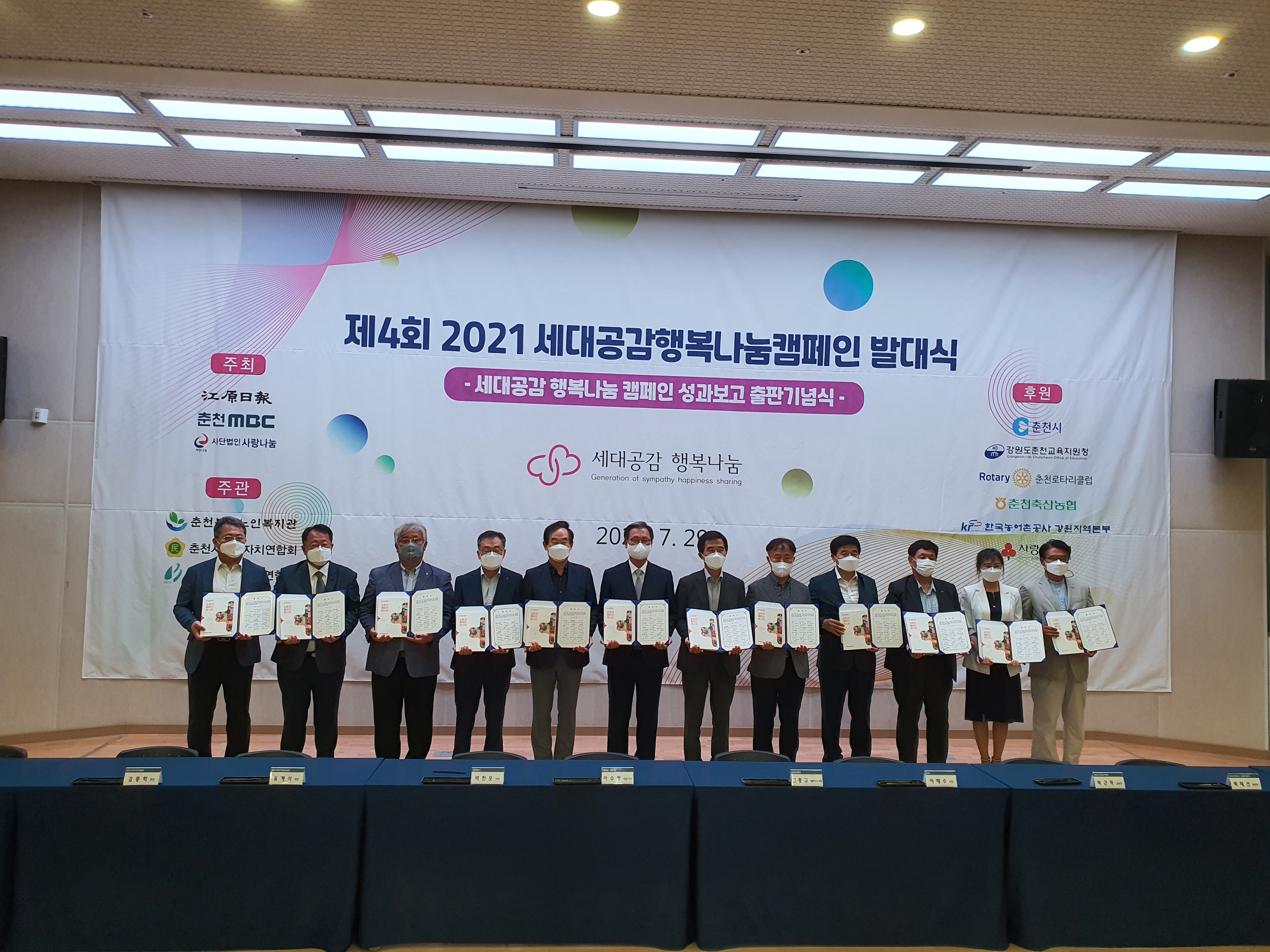 [강원사회복지신문 유경수 기자]=춘천북부노인복지관(관장 박재호)은 지난 7월 29일 11시, 춘천북부노인복지관 3층 강당에서 '2021 세대공감 행복나눔 캠페인'의 발대식과 2018~2020 세대공감 행복나눔 캠페인 성과보고 기념집의 출판기념식을 진행했다. '2021 세대공감 행복나눔 캠페인'은 세대 간 소통과 화합을 통해 지역...