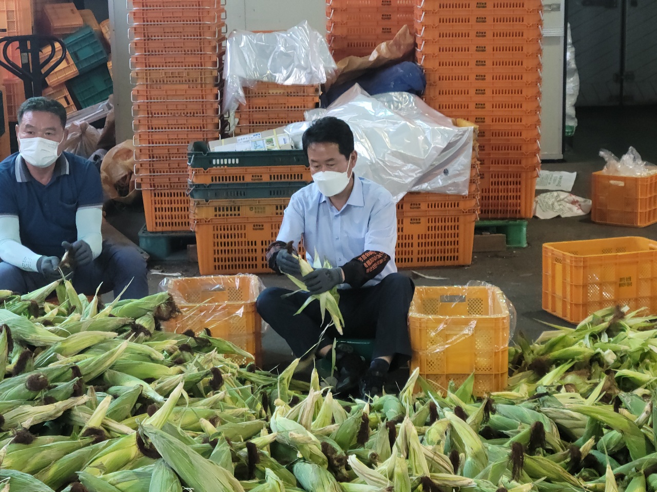 [강원사회복지신문 홍기한 기자]=허필홍 홍천군수는 지난 7월 26일 두촌면 이장협의회(회장 이상필), 두촌면 행정복지센터(면장 이성희)와 함께 홍천농협 두촌지점 옥수수 선별장에서 찰옥수수 선별작업 등 농촌일손돕기에 참여했다.