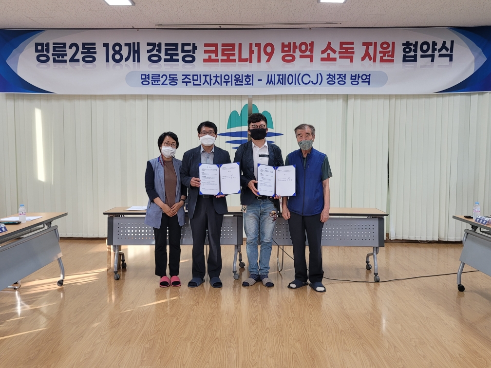 [강원사회복지신문 서은진 기자]=원주시 명륜2동 주민자치위원회(회장 김동운)와 씨제이(CJ) 청정 방역은 지역 어르신들의 코로나19 감염 예방을 위해 지난 7월 12일 원주시 명륜2동 행정복지센터에서 경로당 방역 지원 협약을 체결했다. 이번 협약을 통해 이달부터 오는 9월까지 약 3개월에 걸쳐 명륜2동 소재 18개 경로당을...