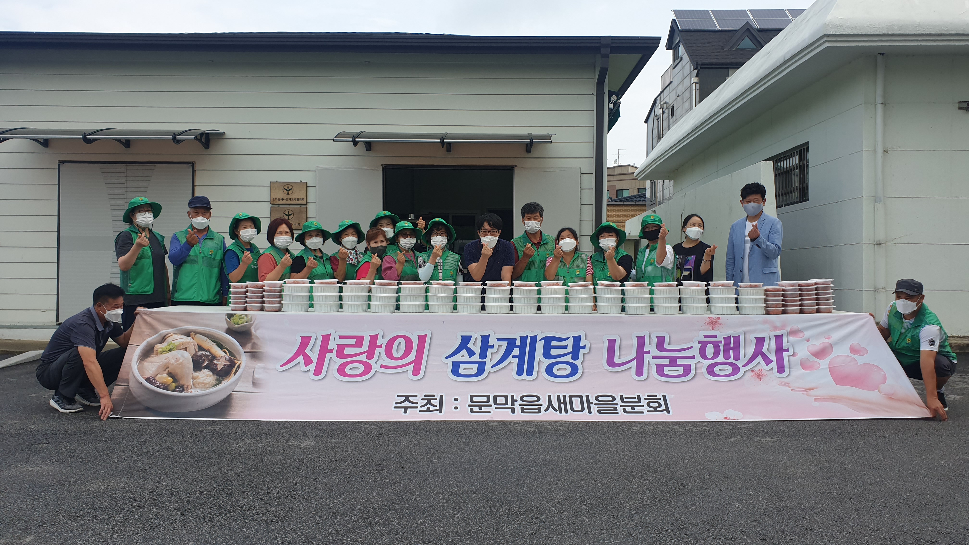 [강원사회복지신문 서은진 기자]=원주시 문막읍 새마을분회는 지난 7월 7일 사랑의 삼계탕 나눔 행사를 열고 지역 어르신 및 소외계층 50가구에 삼계탕을 대접했다.