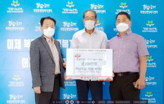 [강원사회복지신문 김종한 기자]=동해시 내 아너 소사이어티 회원인 추암횟집 박태권 대표는 지난 6월 28일 동해시 북평동 추암마을 어르신들의 '코로나19 극복을 위한 건강나들이 행사' 지원을 위해 사용해 달라며 200만원의 후원금을 기탁했다.