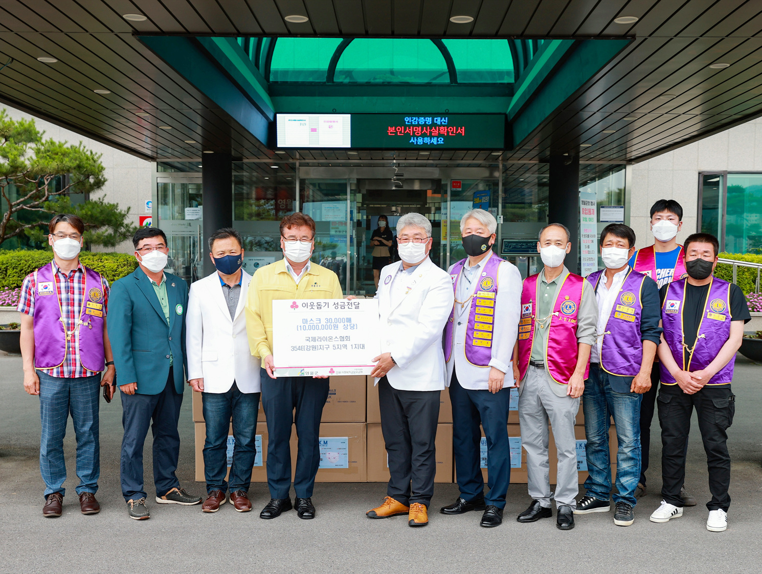 [강원사회복지신문 이정환 기자]=국제라이온스협회 354-E지구(총재:김상호) 임원들은 지난 6월 28일 코로나19로 어려움을 겪고 있는 가구를 위해 사용해 달라며 마스크 3만매(1천만원 상당)를 영월군에 기탁했다. 기탁자는 "코로나19로 어려움을 겪는 지역 취약계층에게 작은 위로가 되길 바란다."라고 전했다. 기탁된 성품은...