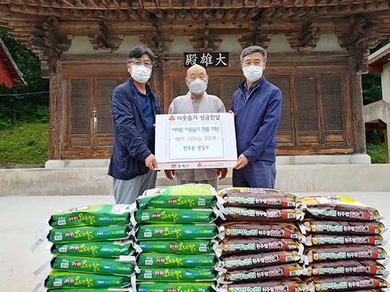 백미 10kg 30포 현물 지정 기탁 [강원사회복지신문 김종한 기자]=동해시 만우동에 소재한 사찰 정심사에서 지난 6월 14일 하절기를 맞아 관내 어려운 이웃에게 전해달라며 사랑의 쌀 30포(100만원 상당)를 망상동행정복지센터에 지정 기탁했다. 기탁받은 백미는 후원자의 의사에 따라 복지대상자로 생계가 어려운 이웃 30가구...
