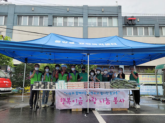 [강원사회복지신문 서은진 기자]=원주시 중앙동 새마을부녀회(회장 이복순)와 지역사회보장협의체(위원장 이재선)는 단오를 맞아 지난 6월 15일 중앙동 행정복지센터에서 사랑 가득 음식 나눔 봉사를 펼쳤다. 부녀회원들이 손수 채취한 쑥으로 빚은 쑥떡을 비롯해 메추리알 장조림, 겉절이 김치 및 지역사회보장협의체가 대여...