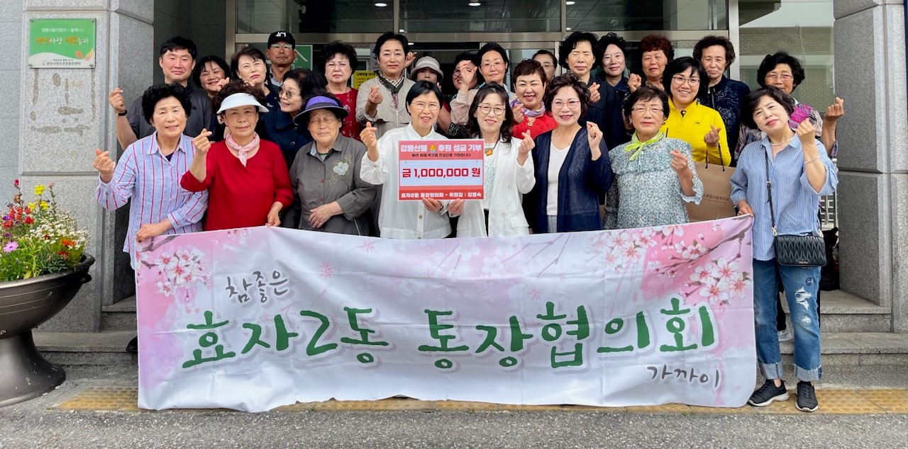 [강원사회복지신문 서은진 기자]=춘천시 효자2동 통장협의회(회장 김영숙)는 지난 6월 8일 폐페트병을 모아 자원 재활용을 통한 모은 수익금 100만 원을 강릉 산불 피해 이재민들을 위해 효자2동 행정복지센터에 전달했다.