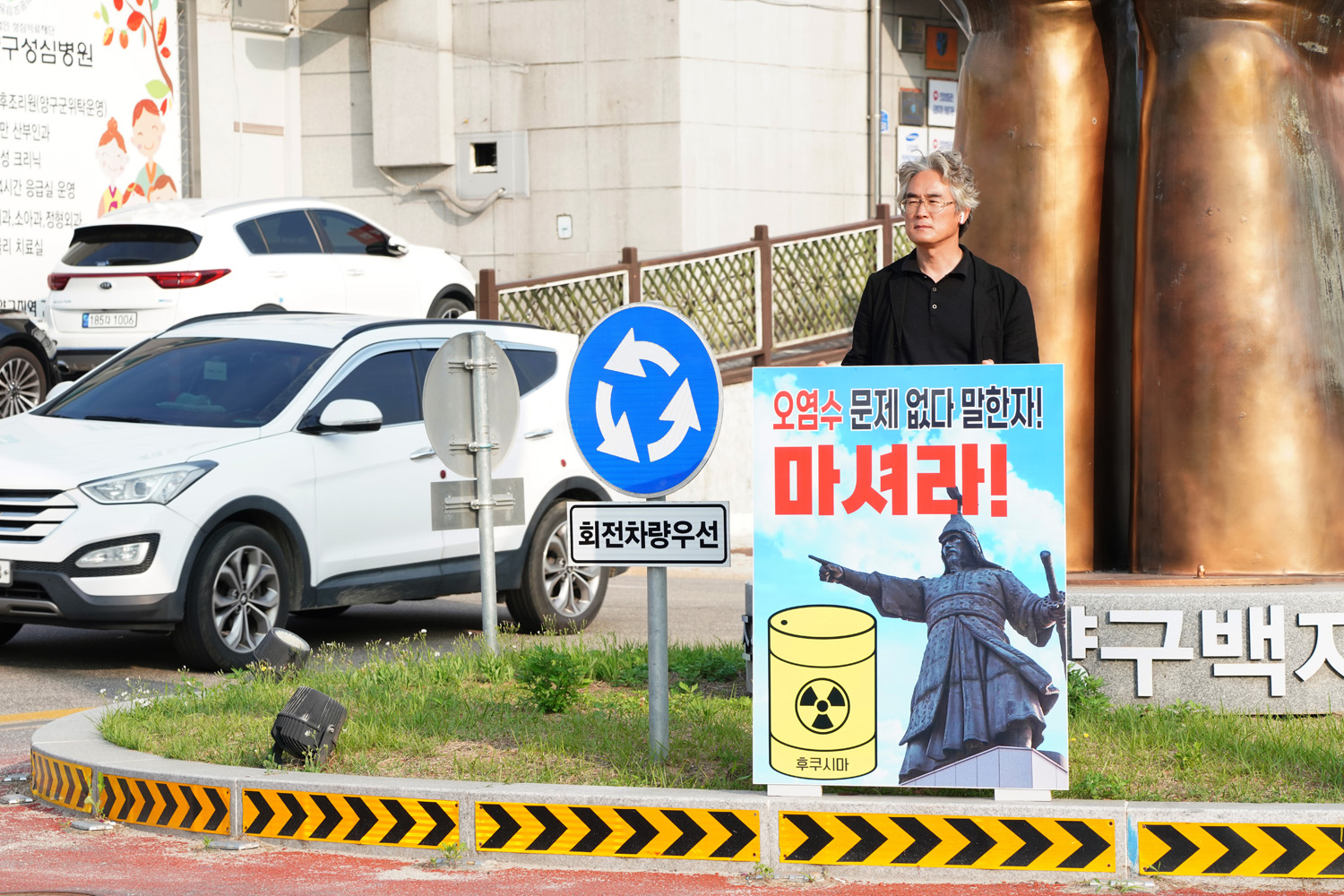 [강원사회복지신문 이정환 기자]=양구군의회 신철우의원이 지난 6월 8일 양구경찰서 앞 회전교차로에서 후쿠시마 원전수 방류를 반대하는 피켓을 들고 1인시위를 했다. 이번 시위는 '후쿠시마 원전 오염수를 2023년부터 30년에 걸쳐 인근 해양에 방류한다'는 일본 정부의 결정에도 국민의 생명과 건강에 직결되는 오염수 방류...