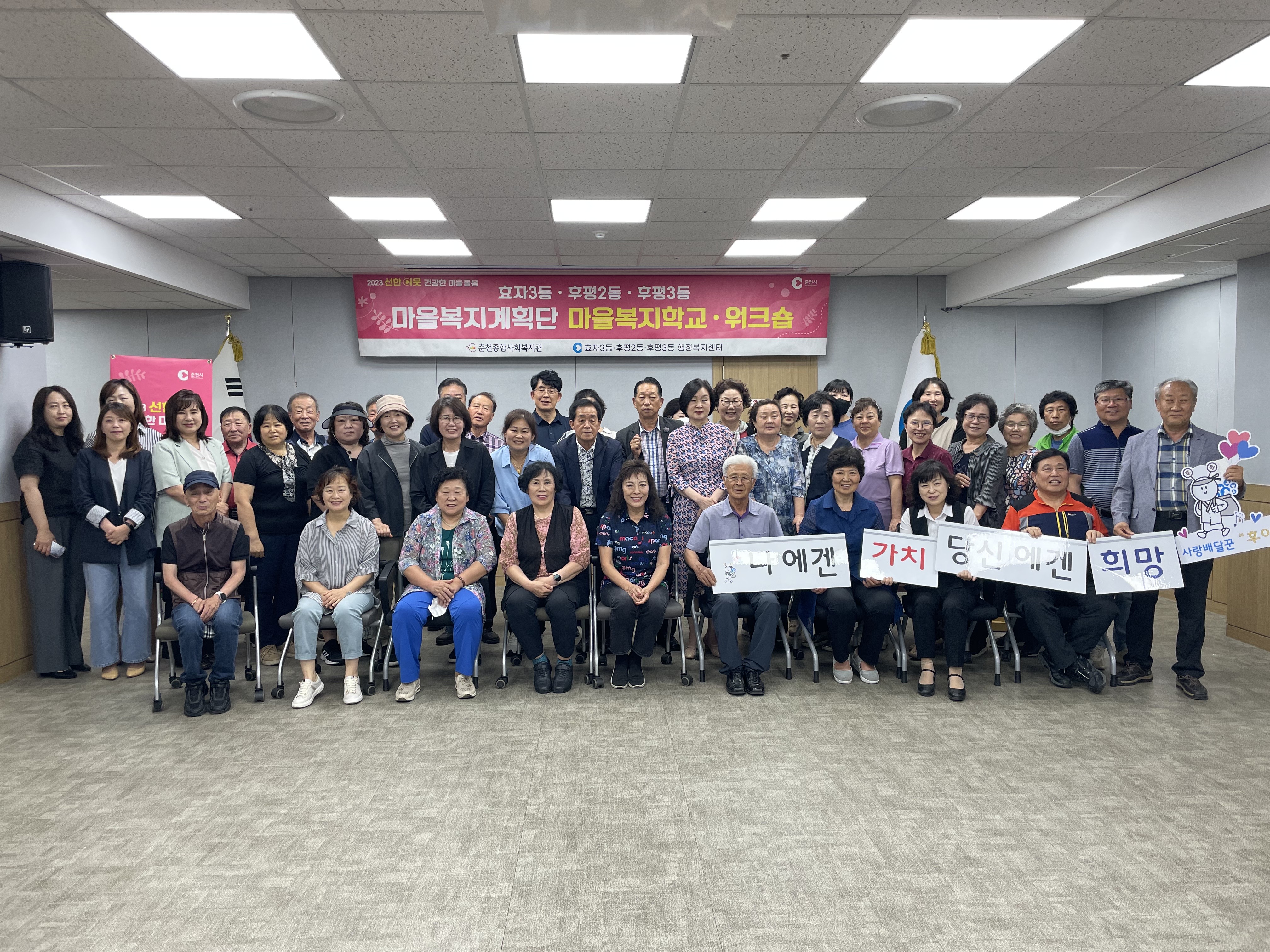 [강원사회복지신문 서은진 기자]=춘천종합사회복지관(관장 오미경)은 지난 6월 2일 '2023 선한이웃 건강한 마을 돌봄 효자3동·후평2동·후평3동 마을복지계획단' 50명과 함께 주민교육 및 1차 워크숍을 춘천시청 민방위교육실에서 진행했다. 이번 주민교육은 '타 시의 돌봄 공동체의 사례공유를 통한 우리 마을의 방향성 발...
