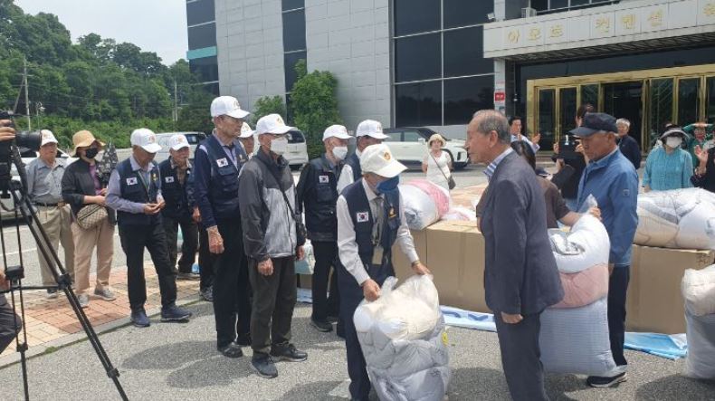 [강원사회복지신문 이정환 기자]=대한민국 전몰군경 유족회 원주지회(지회장 김승은)는 호국 보훈의달을 맞이하여 지난 6월 1일 11시 원주시 태장동아모로 웨딩홀 본관 앞에서 이웃사랑나눔실천 (사)작은천사(이사장 이준규)로부터 홈랩(침구류) 70세트(3500만원 상당)를 기증받아 (사)작은천사후원 회원 50명과 6.25참전 유...