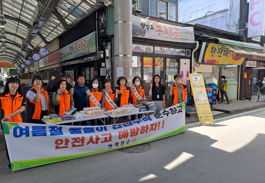[강원사회복지신문 이정환 기자]=화천군은 지난 5월 31일 화천 전통시장에서 화천의용소방대연합회 대원 등이 참석한 가운데 '대한민국 안전대전환 2023 집중안전점검' 및 여름철 물놀이 안전사고 예방 캠페인을 진행했다.