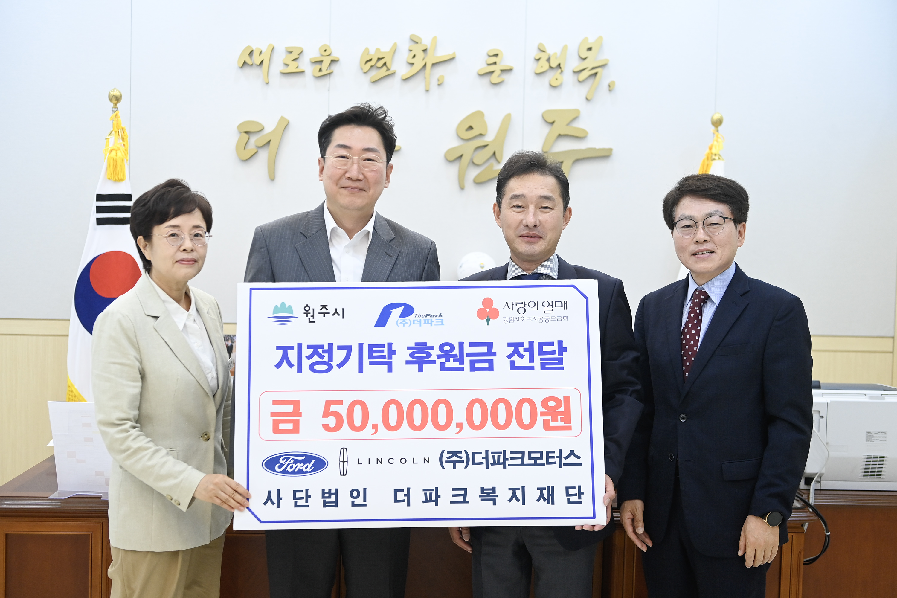 [강원사회복지신문 홍기한 기자]=포드링컨(주)더파크모터스(회장 박용환)는 지난 5월 19일 원주시청을 방문하여 지정기탁 후원금 5,000만 원을 기부했다. 후원금은 사회복지공동모금회 및 굿네이버스를 통해 반곡관설동 저소득층에 전달될 예정이다. 박용환 회장은 "조촐하게 경로잔치를 시작으로 한 기부가 어느덧 20주년을...