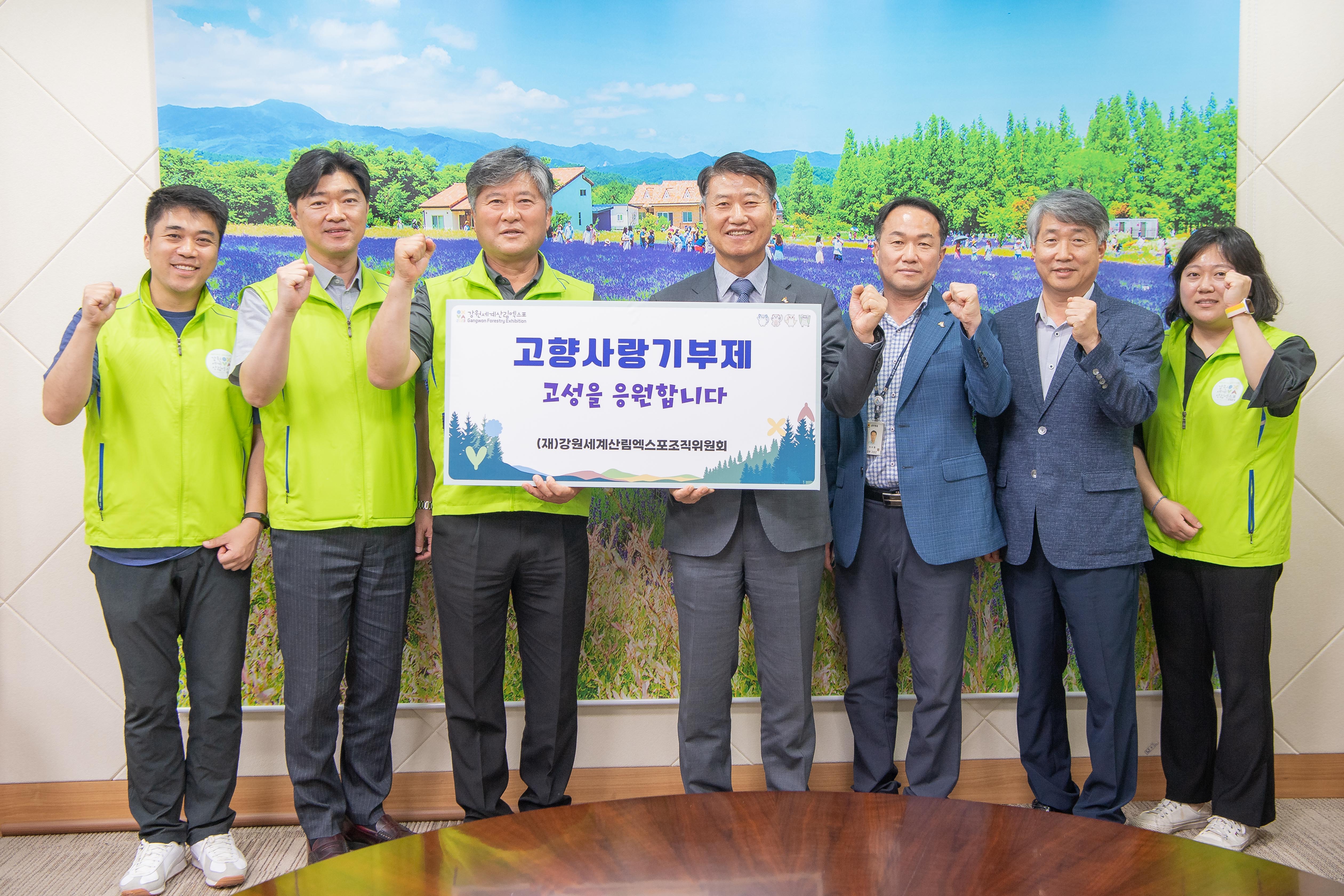 [강원사회복지신문 이정환 기자]=강원세계산림엑스포조직위원회(상임부위원장 김동일)와 고성군청(군수 함명준)은 고향사랑기부제 기탁식을 지난 5월 17일 고성군청에서 진행했다. 함명준 고성군수는 "고향사랑기부제에 참여해주신 조직위원회에 깊이 감사드린다."라며 "고성을 사랑하고 응원해 주시는 분들의 소중한 뜻을 모...
