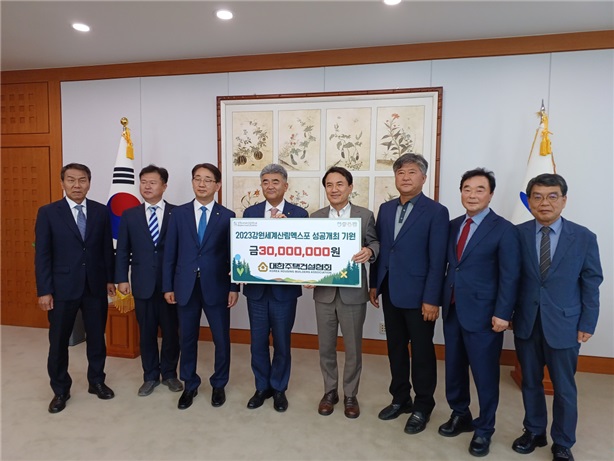 [강원사회복지신문 서은진 기자]=대한주택건설협회 후원금 3천만원 기탁 대한주택건설협회(회장 정원주)에서 지난 5월 11일(목) ‘2023 강원세계산림엑스포’ 성공개최를 기원하며 (재)강원세계산림엑스포조직위원회(조직위원장 김진태)에 후원금 3천만원을 기탁했다. 이날 기탁식에는 김진태 조직위원장, 김동일 상임부위원...